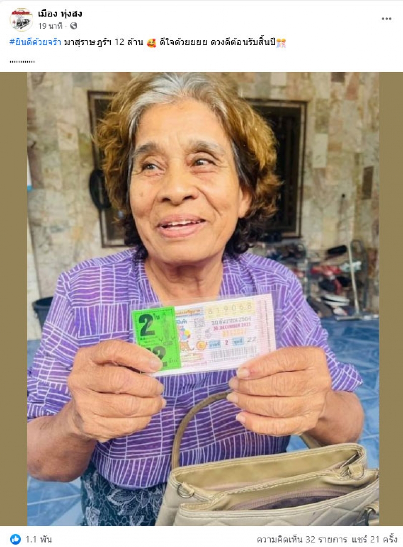 ยายวัย 66 ปี ถูกรางวัลที่ 1 รับ 12 ล้าน เตรียมแจกลูกหลาน