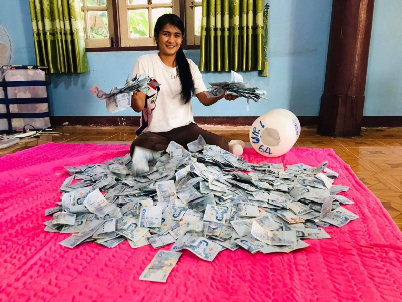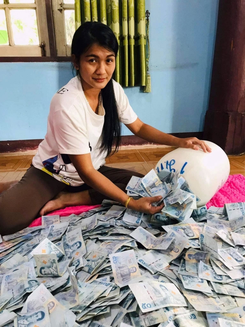 โดยเก็บเฉพาะธนบัตร 50 บาท สามารถเก็บไปได้กว่า 147,950 บาท และธนบัตร 100 บาท อีก 32,900 บาท ซึ่งเธอได้มีการระบุข้อความว่า