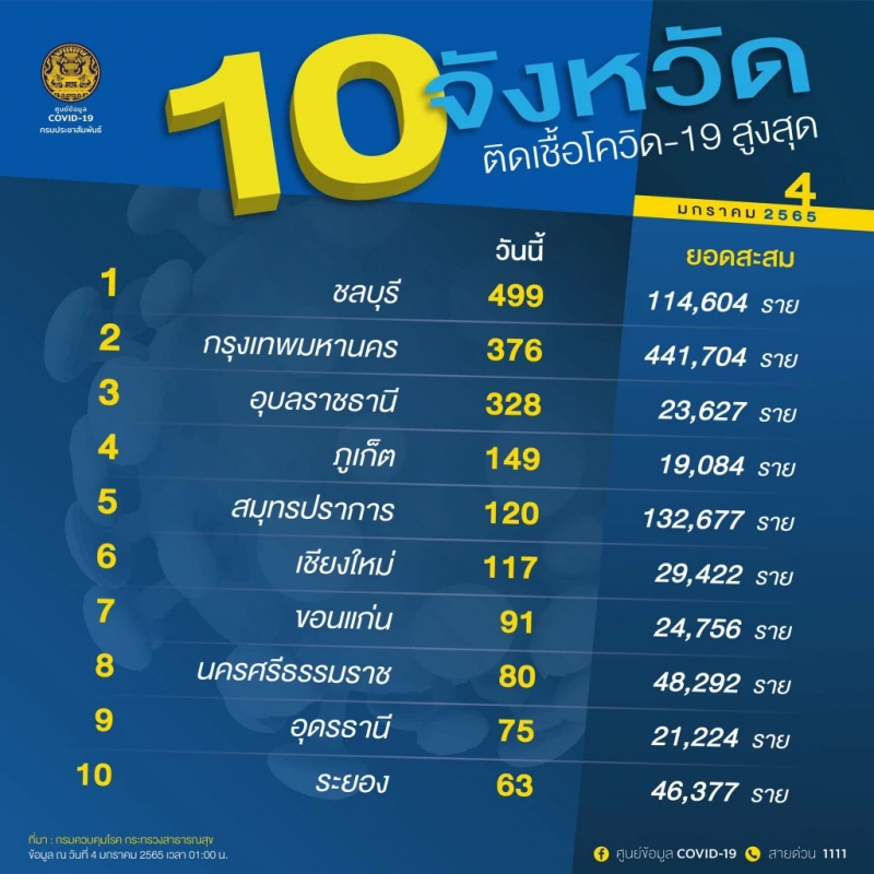 อัพเดทต่อเนื่อง เกาะติดสถานการณ์วันนี้ 4 ม.ค. 65 เกาะติดความคืบหน้า 10 จังหวัดติดสูงสุด
