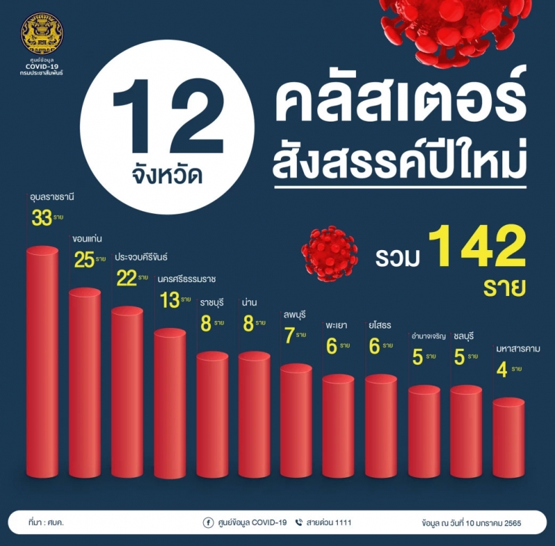 เปิดรายชื่อ 12 จังหวัด พบคลัสเตอร์สังสรรค์ปีใหม่