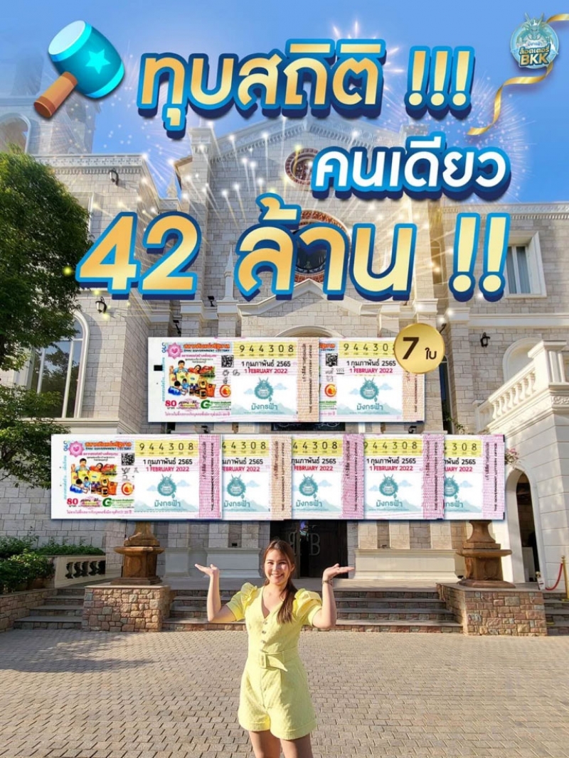 สาววัย 22 ถูกรางวัลที่1 เหมาคนเดียว 7 ใบ รับเต็มๆ 42 ล้าน