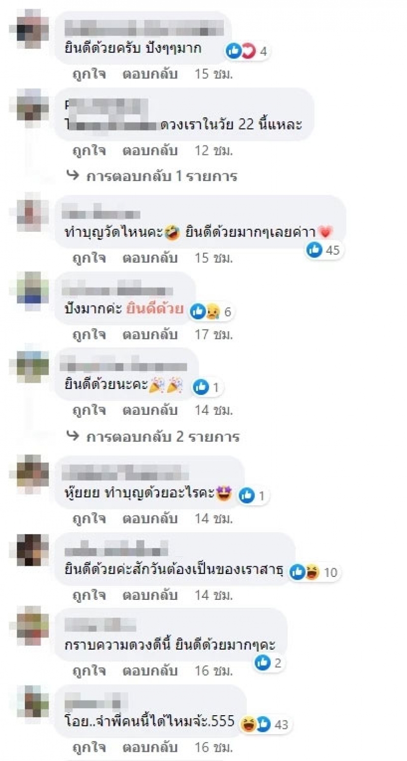 ทั้งนี้ หลังจากโพสต์ดังกล่าวถูกเผยแพร่ออกไป ได้รับความสนใจเป็นอย่างมาก ซึ่งมีคนเข้ามากดแสดงความรู้กว่าหมื่นครั้ง และเข้ามาแสดงความคิดเห็นกันมากมาย ซึ่งส่วนมากเข้ามาแสดงความยินดีกับสาวสุดเฮงรายนี้