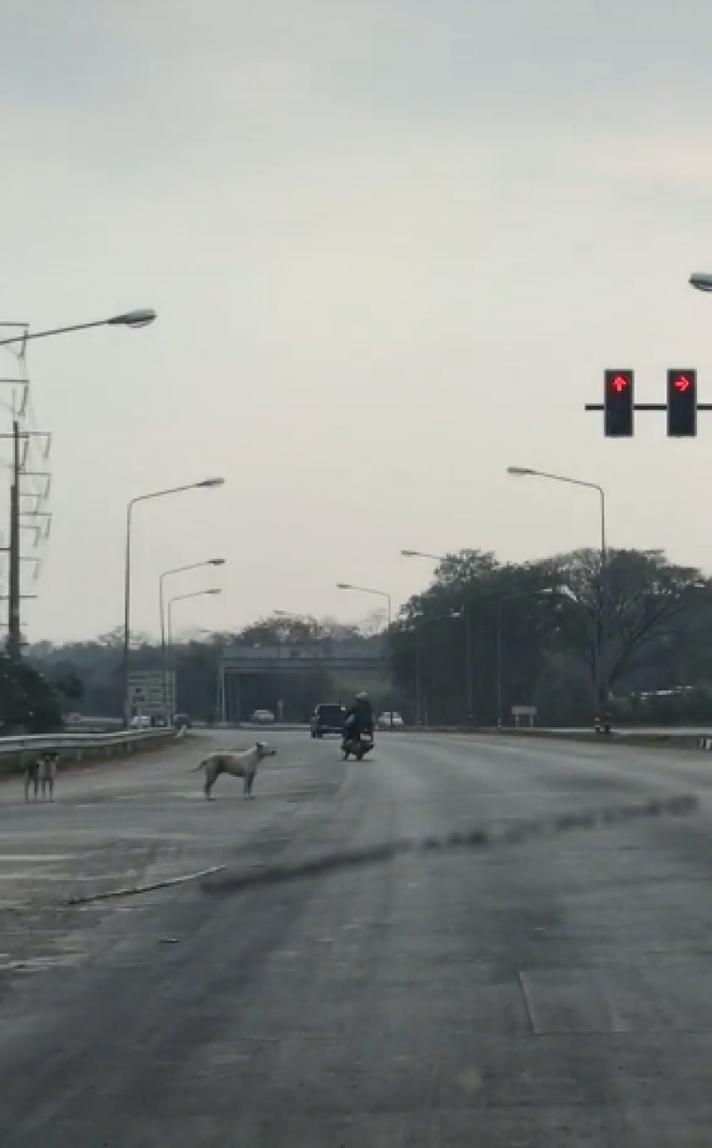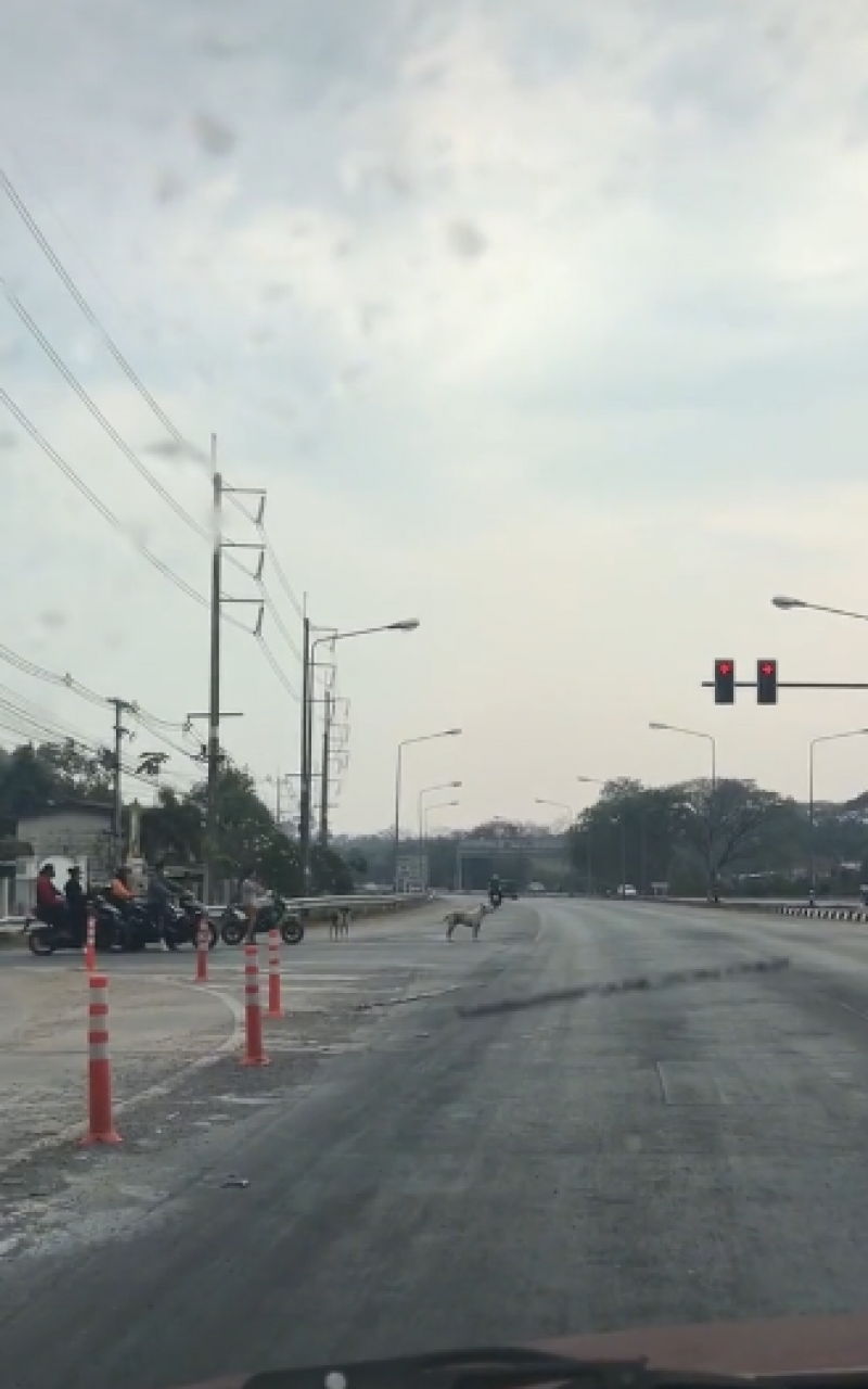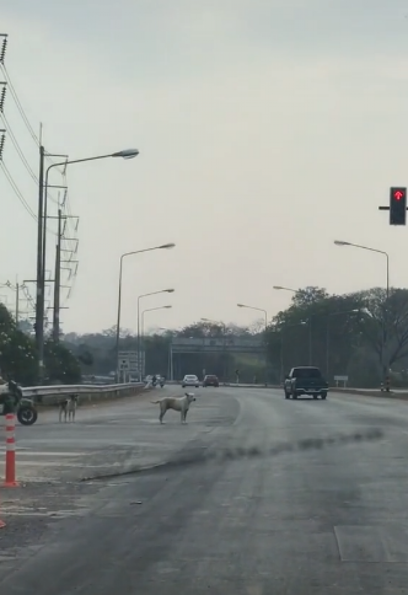 เจ้าตูบ 2 ตัว รู้จักยืนรอไฟแดงข้ามถนน