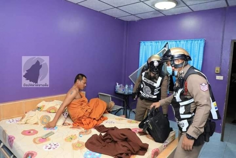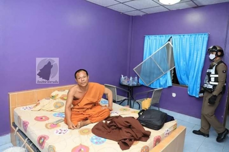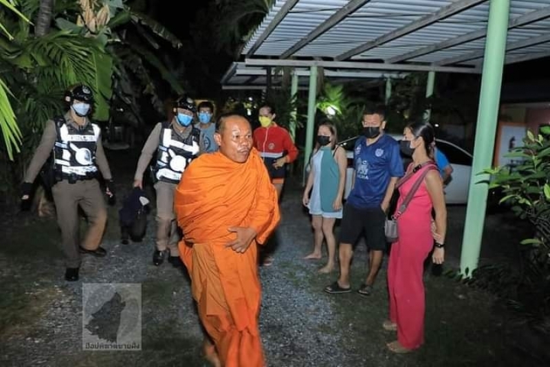 โดย นายสิทธิพร พัฒนารังคะ อายุ 28 ปี ผู้จัดการร้านอาหาร พร้อมเด็กเสิร์ฟภายในร้าน ราว 10 คน กำลังปิดล้อมห้องพักลูกค้าที่ไม่จ่ายเงิน ถูกล็อคประตูจากด้านใน ทำให้ 2 ฝ่าย เกิดมีปากเสียงกัน จนฝ่ายลูกค้าเกิดความโกรธ ระหว่างนั้น พนักงานร้านได้สังเกตเห็นผ่านช่องหน้าต่าง ฝ่ายลูกค้าที่ก่อนหน้าแต่งตัวชุดเที่ยว เสื้อโปโลสีน้ำเงิน กางเกงยีนส์ กำลังเปลี่ยนเครื่องแต่งกายนุ่งห่มจีวรในชุดพระสงฆ์ ก่อนเจ้าหน้าที่ตำรวจจะเกลี้ยกล่อมให้เปิดประตู และเข้าควบคุมตัว ในสภาพที่ไม่มีความสำรวมแม้อยู่ในคาบสงฆ์ ทำให้ชาวบ้านที่อยู่ในเหตุการณ์ต่างไม่พอใจ