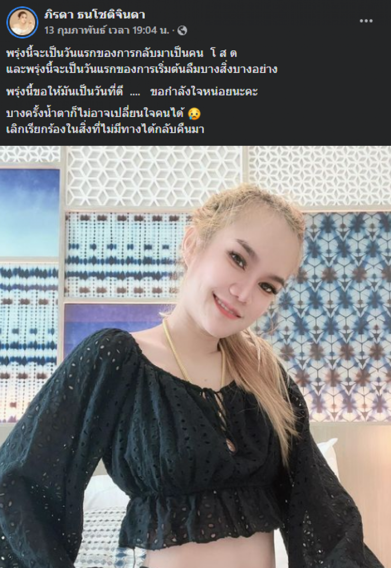 โดยพบว่า เมื่อวันที่ 13 ก.พ. หรือ ก่อนวันที่ 14 ก.พ. หรือ วันวาเลนไทน์ ทางแม่น้ำหนึ่ง ได้โพสต์ภาพตัวเองลงบนเฟซบุ๊กส่วนตัว โดยสวมเสื้อปกติ แต่ด้านล่างสวมบิกีนี พร้อมข้อความว่า พรุ่งนี้ (14 กุมภาพันธ์) จะเป็นวันแรกของการกลับมาเป็นคนโสด และพรุ่งนี้จะเป็นวันแรกของการเริ่มต้นลืมบางสิ่งบางอย่าง พรุ่งนี้ขอให้มันเป็นวันที่ดี ขอกำลังใจหน่อยนะคะ บางครั้งน้ำตาก็ไม่อาจเปลี่ยนใจคนได้ เลิกเรียกร้องในสิ่งที่ไม่มีทางได้กลับคืนมา