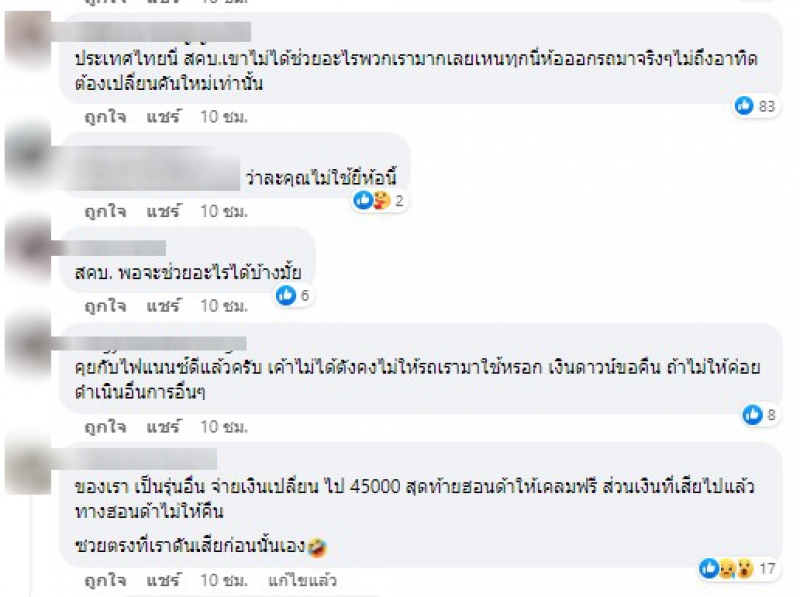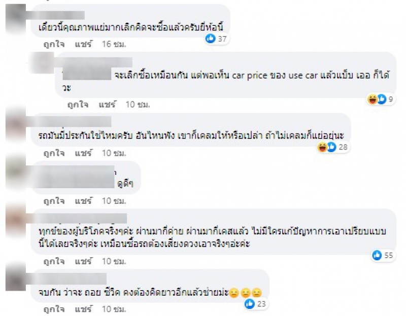 เราเลยตัดปัญหาขอแค่เปลี่ยนคันไหม่หรือเปลี่ยนรุ่นไปเลยก็รอเป็นอาทิตย์ ตอบไม่ได้อีก รถออกแค่วันเดียว ขอคำแนะนำ ช่วยหนูด้วย หนูรับไม่ได้จริงๆเสียเงินซื้อรถต้องมาใช้รถที่ขับแค่วันเดียวแล้วเปลี่ยนเกียร์ใหม่ ทำใจ ไม่ได้ค่ะ ตอนนี้จะเอาเงินคืนอย่างเดียวแล้วค่ะเพราะไฟแนนซ์ก็ระงับการจัดไปแล้วค่ะ