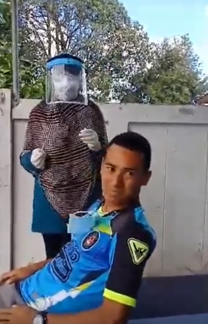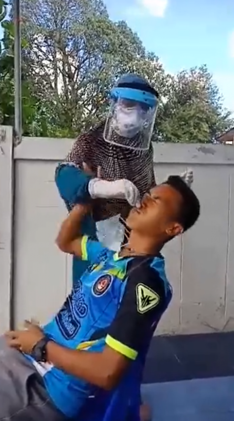 โดยคลิปดังกล่าว เผยให้เห็นเจ้าหน้าที่ทางสาธารณสุขหญิงรายหนึ่ง กำลังใช้ก้านสำลีเข้าไปปั่น เพื่อตรวจหา CV - 19 ให้กับชายคนดังกล่าว แต่ทว่า เหมือนกับเจ้าหน้าที่รายนี้จะปั่นแรงไปหน่อย ชายคนดังกล่าวจึงปัดมือเจ้าหน้าที่รายนี้ออก พร้อมกับสีหน้าที่ไม่ค่อยพอใจนัก ซึ่งจากในคลิปดังกล่าว ชายคนนี้ได้บอกว่า พี่เบาหน่อย ส่วนทางเจ้าหน้าที่ก็บอกกลับไปว่า เบาแล้ว