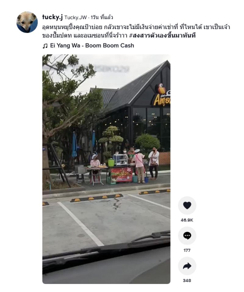 กลายเป็นอีกหนึ่งเรื่องราว ที่สร้างความฮือฮาในโลกออนไลน์ หลังจากที่ผู้ใช้ tiktok ชื่อ tucky.j ได้มีการโพสต์คลิปเล่าเรื่องราว โดยระบุว่า อุดหนุนหมูปิ้งคุณป้าบ่อย กลัวเขาจะไม่มีเงินจ่ายค่าเช่าที่ ที่ไหนได้ เขาเป็นเจ้าของปั๊มปตท และอเมซอนที่นี่จร้าาา #สงสารตัวเองขึ้นมาทันที