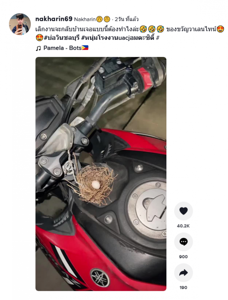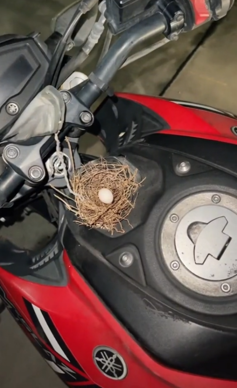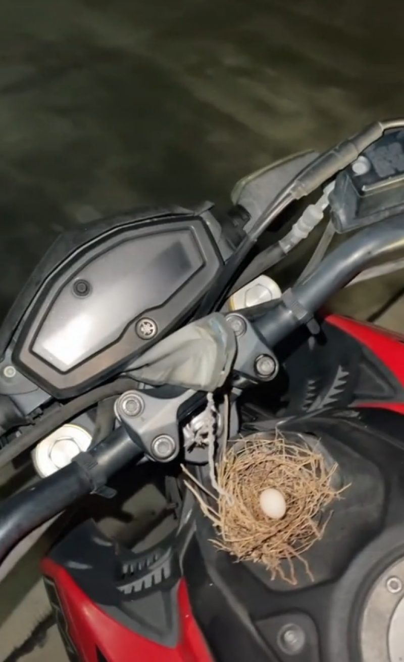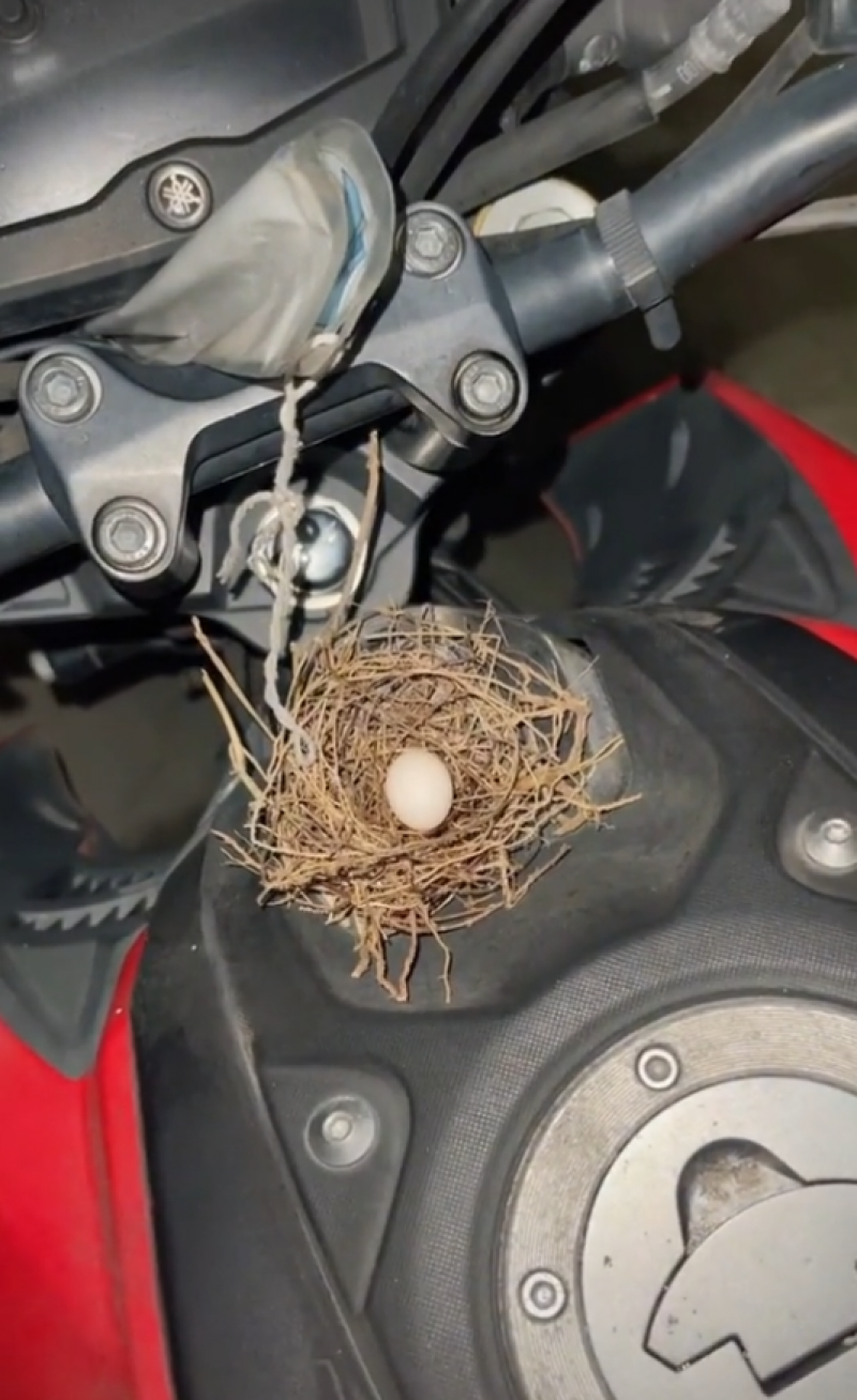 โดยเป็นคลิปหลังจากที่หนุ่มรายนี้กำลังเลิกงานและกำลังจะกลับบ้าน แต่ทว่าพอมองไปที่รถ จยย. ก็พบว่ามีนกมาทำรังพร้อมกับไข่ไว้ 1 ฟอง งานนี้ ทำเอาชาวโซเชียลเข้ามาคอมเม้นท์ ขอเลขทะเบียนกันเป็นจำนวนมาก โดยผู้โพสต์เผยว่า คนที่ถามหาทะเบียนน่ะครับ 5884 ครับ
