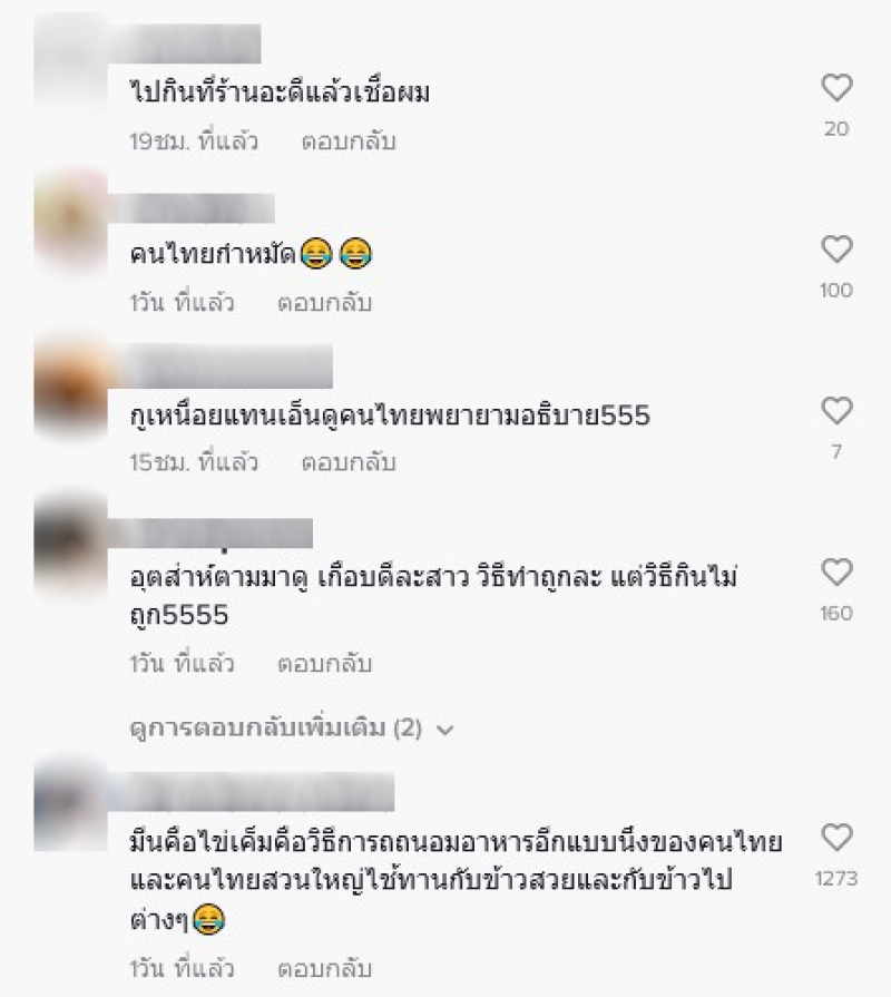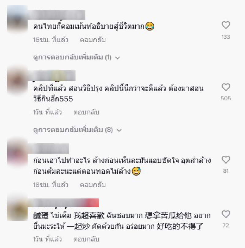 ส่วนชาวเน็ตรอบนี้ถึงกับเหนื่อยใจแทน แซวไปว่า คลิปที่แล้วสอนวิธีปรุงนึกว่าจะดีแล้ว ต้องมาสอนวิธีกินอีก โอ๊ยหัวจะปวด