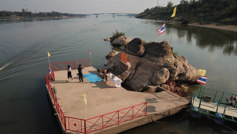 น้ำโขงลดฮวบ รอยพระพุทธบาทอายุกว่า 2,000 ปีโผล่ชัดกลางแม่น้ำ