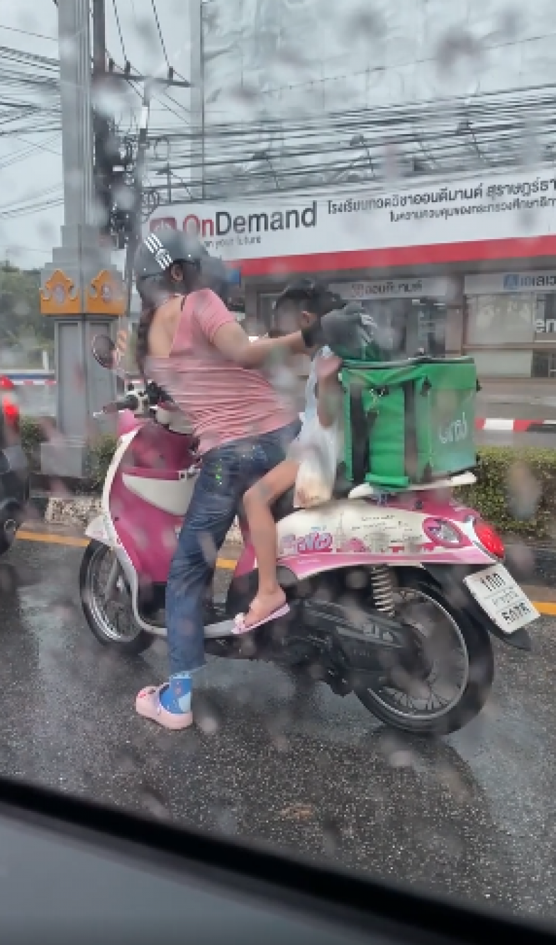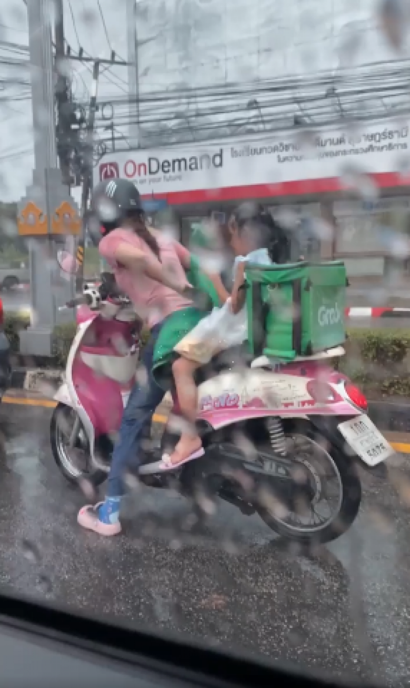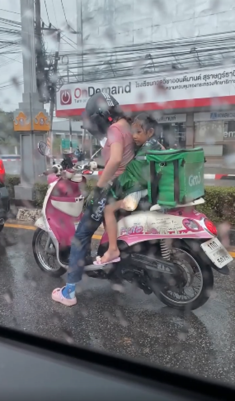 จากกรณีในโลกออนไลน์ ได้มีการเผยเรื่องราว จากผู้ใช้เฟซบุ๊ก ชื่อ พา เพลิน ได้โพสต์คลิป ไรเดอร์ผู้หญิงส่งอาหาร ขับรถจักรยานยนต์จอดติดไฟแดงขณะฝนตก และมีเด็กผู้หญิงนั่งอยู่ด้วย ซึ่งคาดว่าเป็นแม่ลูกกัน โดยผู้เป็นแม่ได้นำเสื้อคลุมให้ลูกที่นั่งซ้อนท้าย พร้อมข้อความว่า "ความเป็นแม่นะ ฝนตกหนักมากๆ น้องมามอไซต์กัน เอ็นดูสู้ๆนะคะ" โดยมีชาวโซเชียล เข้ามาแสดงความคิดเห็น และคอมเม้นท์เอ็นดูกันเป็นจำนวนมาก