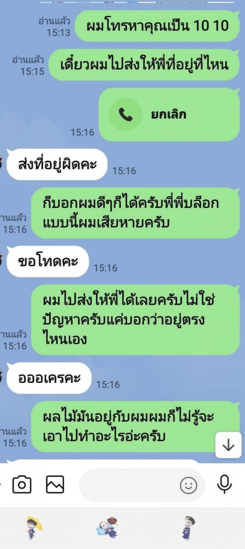 เจอลูกค้าแบบนี้สงสารไรเดอร์เลย ลูกค้า วิราภรณ์ เจอลูกค้าแบบนี้ทุกวันผมไม่ไหว มาสั่งเล่น พอขับไปถึงที่บอกพี่ค่ะหนูไม่รับของได้ไหมค่ะ ซึ่งผมได้รับของมาแล้ว แล้วที่อยู่ก็ปักหมุดไม่ถูก ปักไว้ตรง วิภาวดีซอย 3 แยก 9 ที่อยู่จริงบอกผม พหลโยธิน 29 พอจะโทรไปถามว่าให้ไปส่งไหมพี่ไปส่งให้ได้ บล็อกเบอร์ผม แล้วบอกจะโอนให้ค่าเวลา พอถึงเวลาบอกขอโทษนะคะขอไม่โอนนะ บอกผมไม่โอนตั้งแรกก็จบให้รอ จากเด็กน้อย ที่หลังอย่าสั่งเล่นนะ