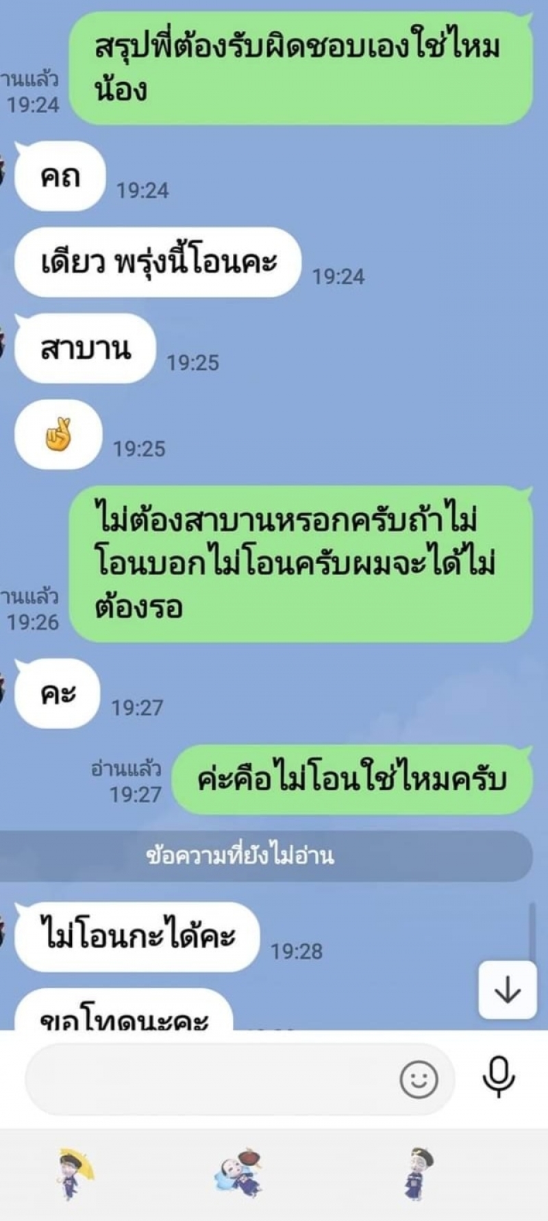 หลังจากนั้น เมื่อไรเดอร์คนดังกล่าวรอจนถึงช่วงเย็น ก็ไม่มีเงินโอนเข้ามายังบัญชี จึงทักไปถามลูกค้าคนดังกล่าวอีกครั้ง สรุปว่าลูกค้าคนดังกล่าวไม่โอนเงินแล้ว แถมยังพิมพ์คำว่า คถ มาอีกด้วย งานนี้เล่นเอาไรเดอร์ไปไม่เป็นเลยทีเดียว