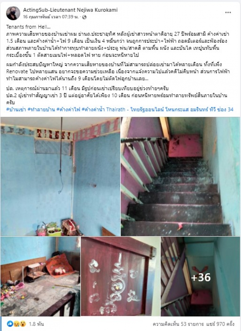 ปล.2 ผู้เช่าทำสัญญาเช่า 3 ปี แต่อยู่อาศัยได้เพียง 10 เดือน ก่อนหนีหายพร้อมทำลายทรัพย์สินภายในบ้านครับ