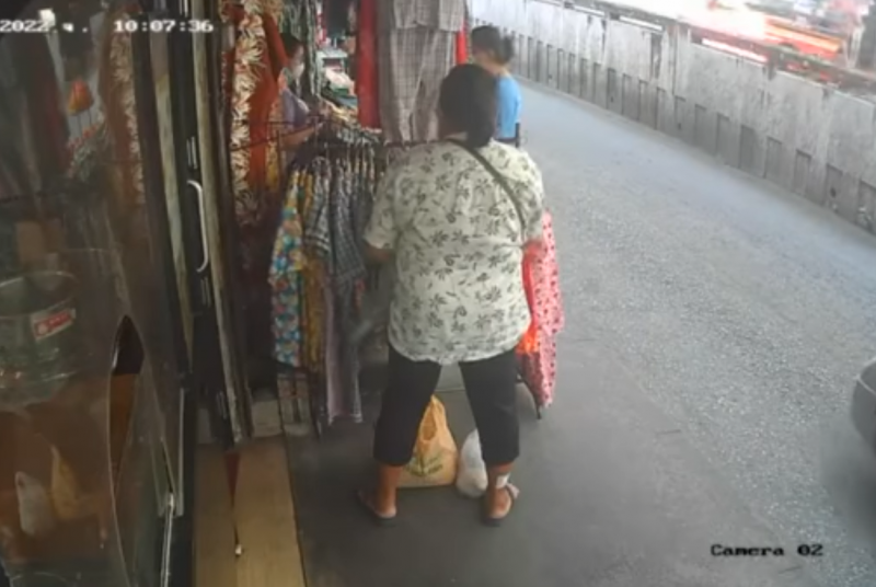 โดยจากคลิปดังกล่าว เผยให้เห็นหญิงรายหนึ่งทำทีมาเลือกซื้อเสื้อผ้าที่ร้านขายเสื้อผ้าดังกล่าว แล้วก็อาศัยจังหวะที่แม่ค้าขายเสื้อผ้า กำลังพูดคุยกับลูกค้าอีกคน นำเสื้อผ้าออกจากไม้แหวนเสื้อใส่ลงในถุงพลาสติกที่เธอเตรียมมา