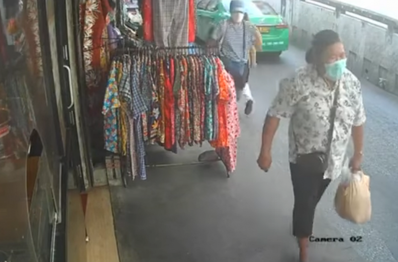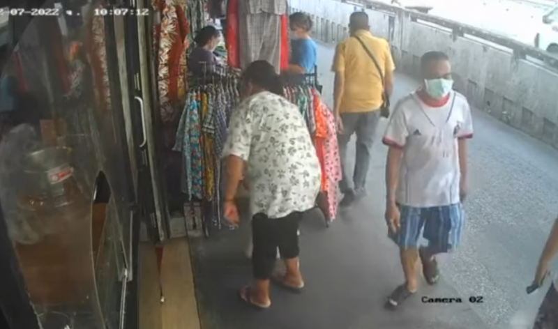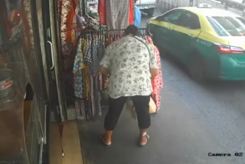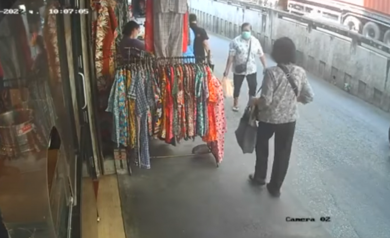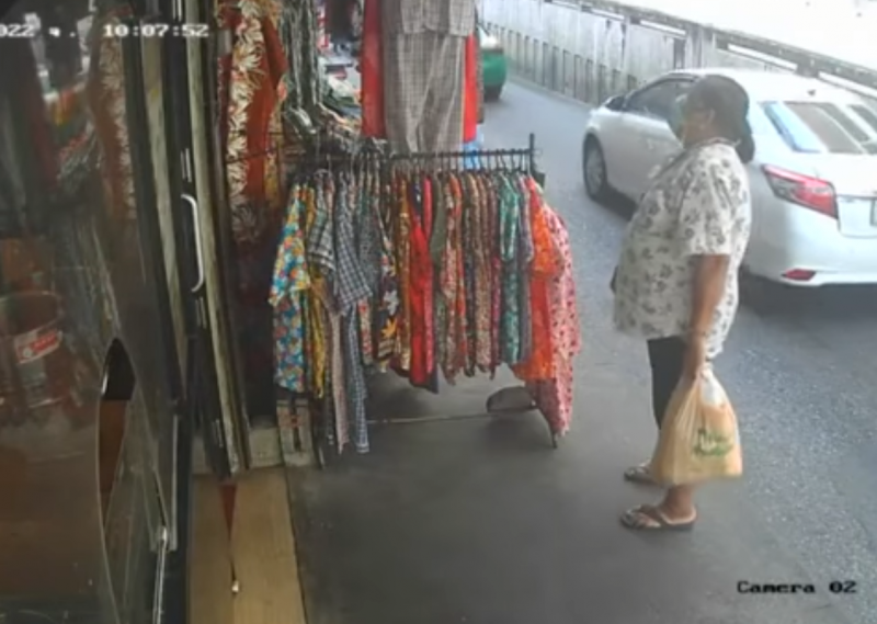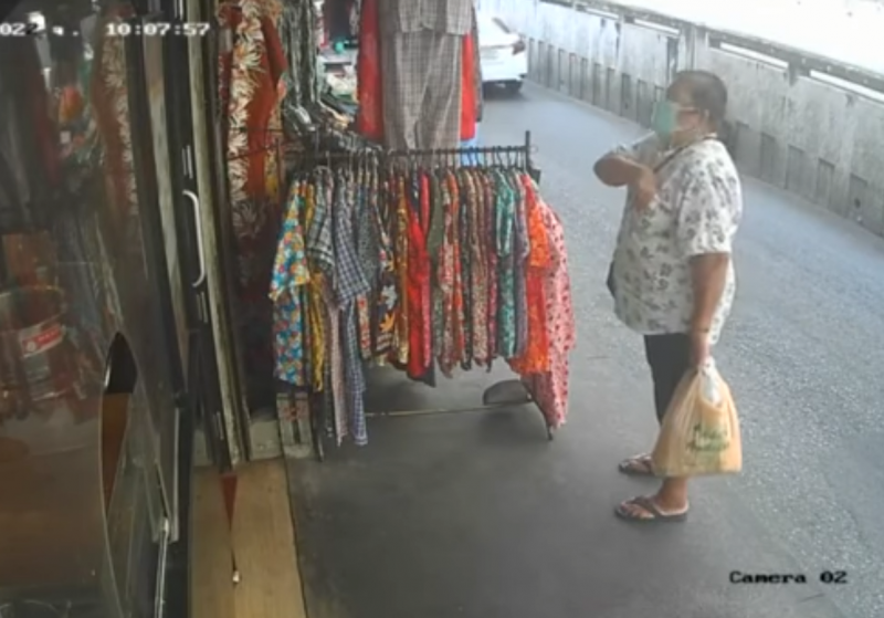 จากนั้น เมื่อลูกค้าอีกคนเดินไป เธอจึงถอยออกจากราวเสื้อผ้า และเข้าไปพูดคุยกับแม่ค้าเหมือนไม่มีอะไรเกิดขึ้น เมื่อคุยกับแม่ค้าได้เพียงสักพัก เธอก็เดินออกจากร้านไป อย่างไม่มีใครสงสัยในตัวเธอ แต่หญิงรายนี้นั้น หารู้ไม่ว่า ที่ข้างร้านแห่งมี้มีกล้องวงจรปิดติดอยู่นั่นเอง