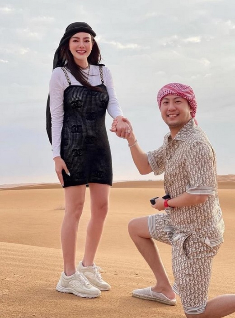ซึ่งในวันแต่งงานจริงๆ คงจะใช่อีกวง ซึ่งแหวนที่ถูกขอแต่งตออยู่ดูไบ เป็นของแบรนด์ดังซึ่งมีขนาดแหวนเกือบ5กระรัต ราคาเกือบสิบล้าน ส่วนงานแต่งจะไม่จัดที่เมืองไทย แต่จะไปจัดที่ไต้หวัน(บ้านเกิดของฝ่ายชาย) และอีกหนึ่งประเทศฝ่ายชายมีอยู่ในใจ รอเซอร์ไพรส์