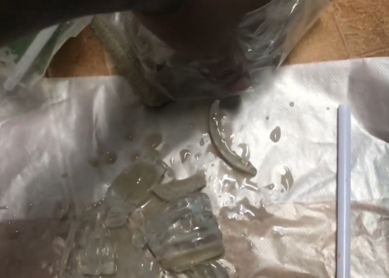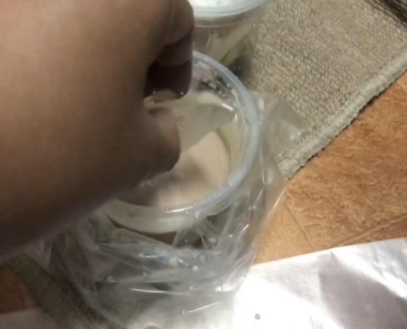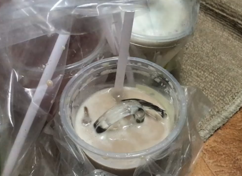 ด้วยความหิวตนจึงรีบใช้หลอดดูดน้ำไปประมาณครึ่งแก้ว และได้เปิดฝาแก้วเพื่อที่จะกินน้ำแข็ง ก็ต้องตกใจเมื่อเห็นเศษที่อยู่ในแก้วน้ำลักษณะใสผิดปกติ จึงใช้หลอดดูดเขี่ยดู ก็พบว่าเป็นเศษแก้วที่แตกแล้วเป็นจำนวนมาก จึงได้นำโทรศัพท์มาถ่ายคลิป และถ่ายภาพไว้ ก่อนที่จะโพสต์ลงในเฟซบุ๊กของตนเอง
