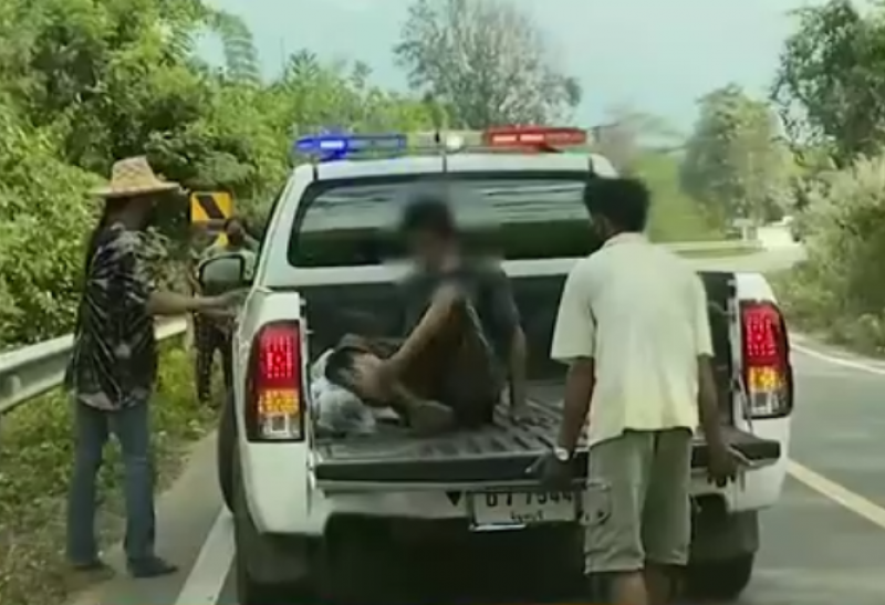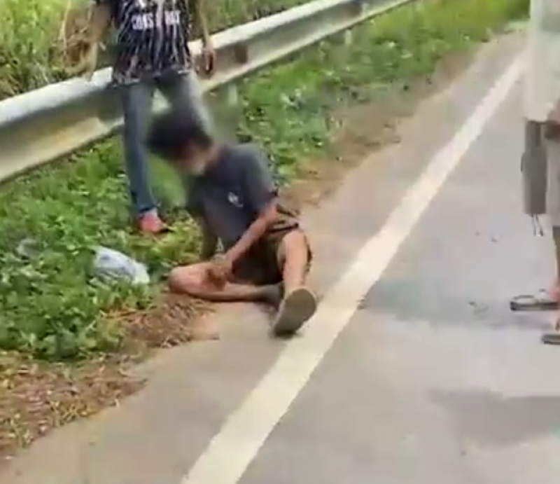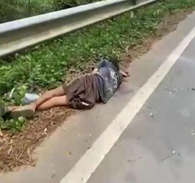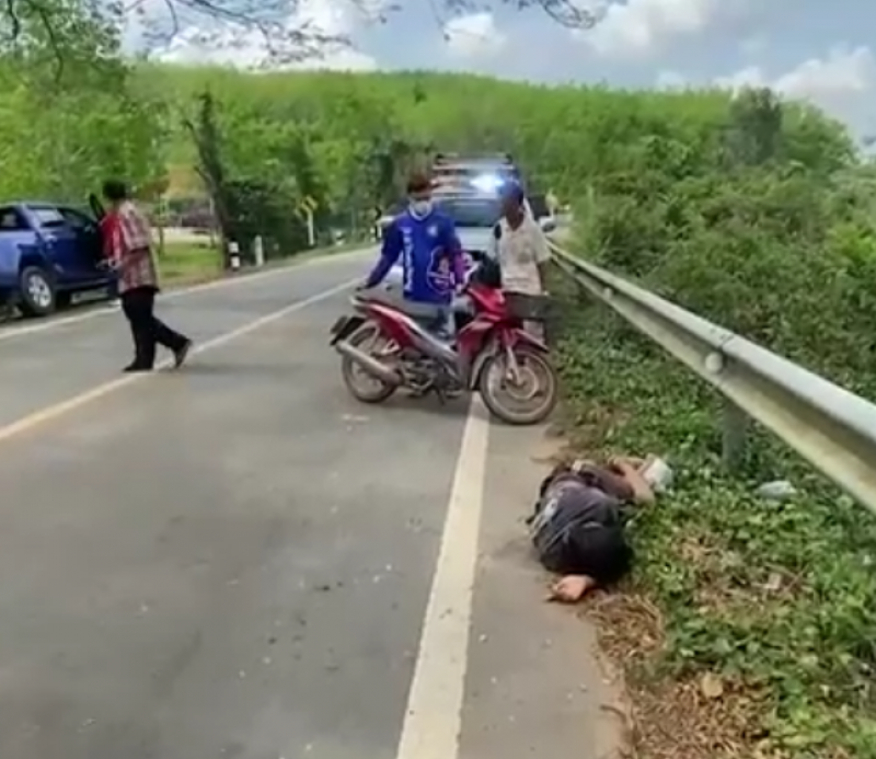 ที่เกิดเหตุอยู่ช่วงกลางทางโค้ง พบชายคนหนึ่งนอนตะแคงข้างอยู่บนไหล่ทาง บริเวณราวเหล็กกั้นถนน สวมเสื้อยืดสีเทา กางเกงขาสั้นสีน้ำตาล ได้ยินเพียงเสียงกรนดังออกมาเป็นระยะ ใกล้กันพบรถจักรยานยนต์จอดอยู่ข้างทาง และแตงโมงอีก 2 ลูก วางอยู่ในป่าข้างทาง