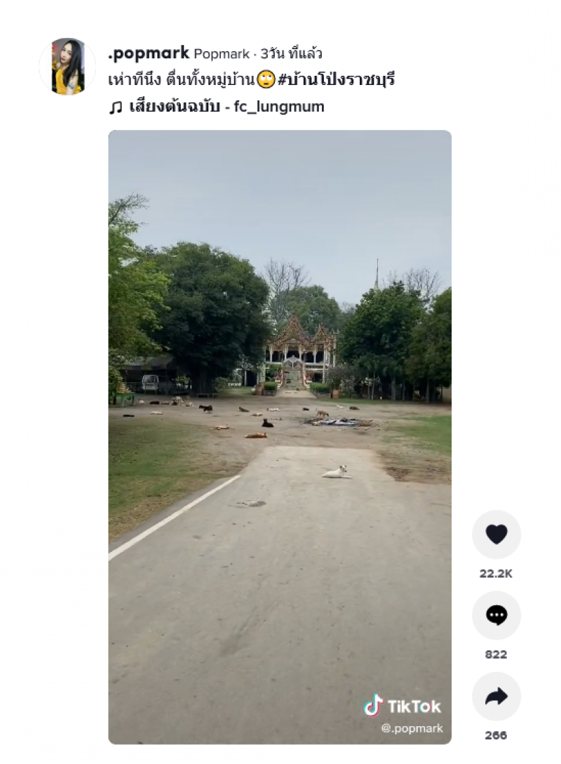 เรียกได้ว่าเป็นอีกหนึ่งคลิป ที่สร้างความฮือฮาในโลกออนไลน์ หลังจากที่ผู้ใช้ Tiktok ชื่อ popmark ได้มีการโพสต์คลิปที่ วัดโพธิ์โสภารามค่ะ ต.คุ้งพยอม อ.บ้านโป่ง จ.ราชบุรี โดยในคลิปได้ระบุว่า ช่วงนี้ไม่กล้าเข้าวัดเลย ซึ่งในคลิปจะเห็นว่ามีสุนัขหลายตัว นอนอยู่ตั้งแต่หน้าวัด ไปจนถึงบันไดเข้าไปด้านในวัด บอกเลยว่าเยอะมาก จนหลายคนคงจะไม่กล้าเดินผ่านกันเลยทีเดียว
