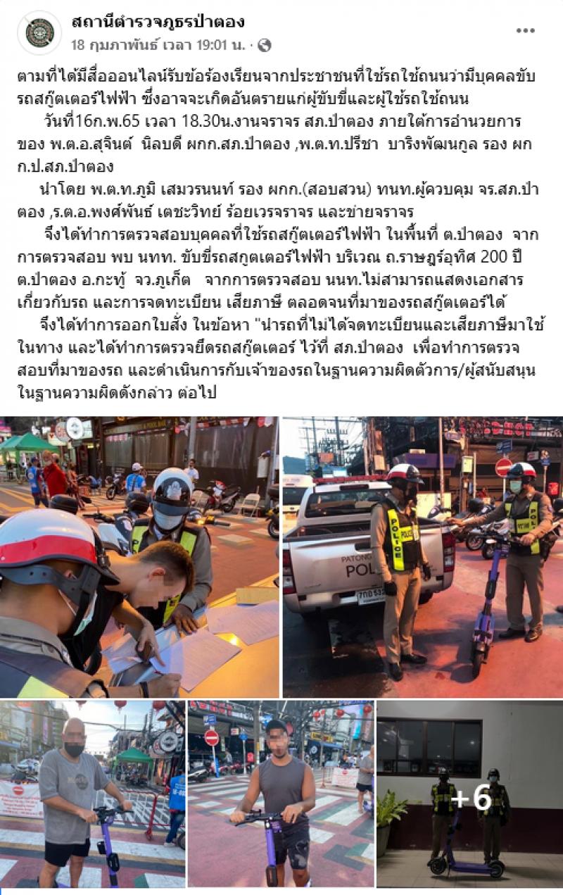จึงออกใบสั่งปรับในข้อหา นำรถที่ไม่ได้จดทะเบียนและเสียภาษีมาใช้ในทาง และได้ทำการตรวจยึดรถสกู๊ตเตอร์ ไว้ที่ สภ.ป่าตอง เพื่อทำการตรวจสอบที่มาของรถ และดำเนินการกับเจ้าของรถในฐานความผิดตัวการ/ผู้สนับสนุน ในฐานความผิดดังกล่าวต่อไป