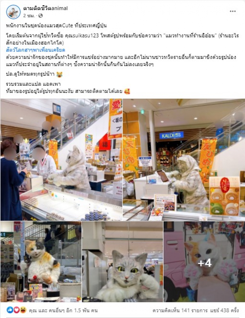 พนักงานในชุดน้องแมวสุดCute ที่ประเทศญี่ปุ่น โดยเริ่มต้นจากผู้ใช้ทวิตชื่อ คุณsuikasu123 โพสต์รูปพร้อมกับข้อความว่า
