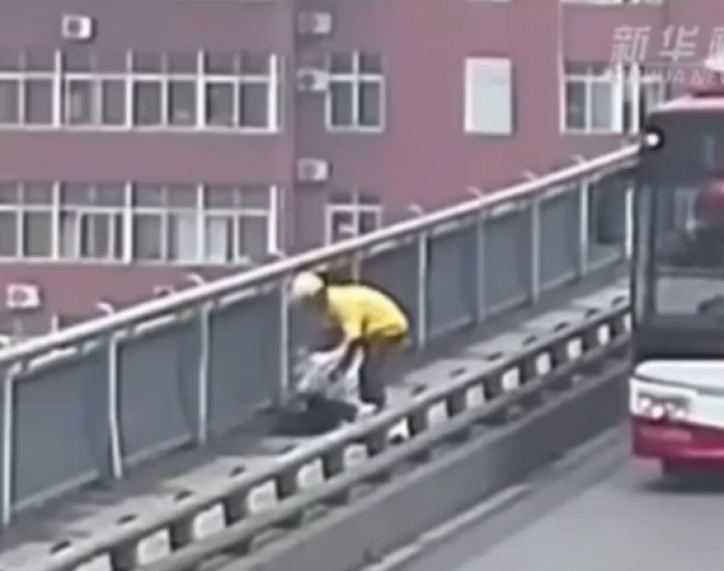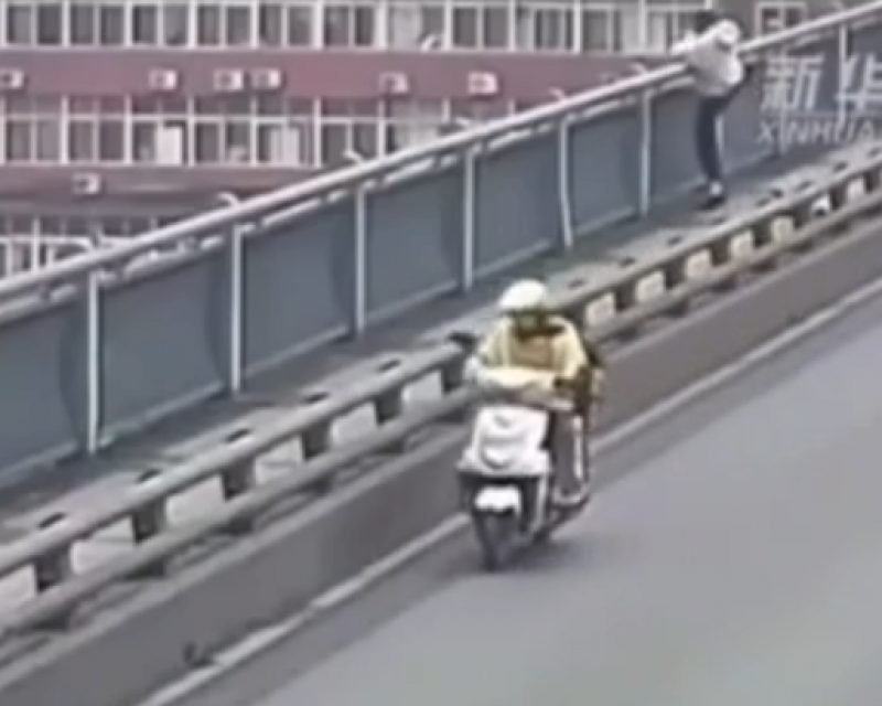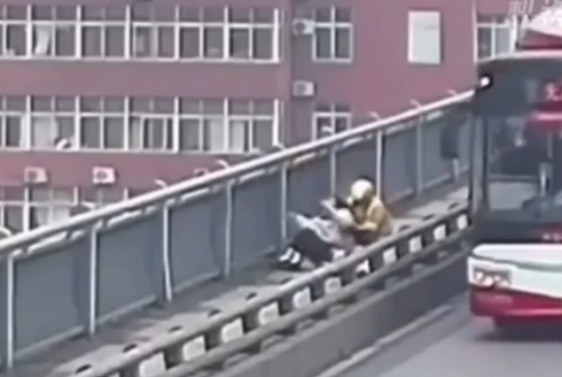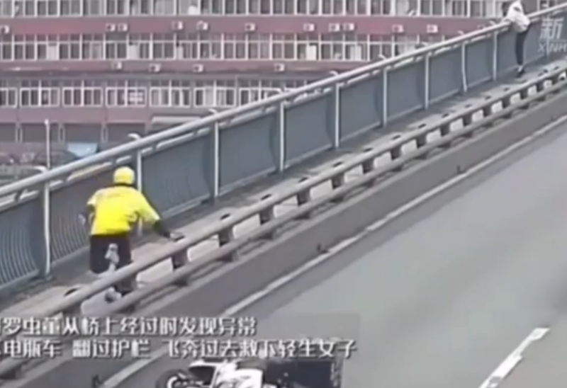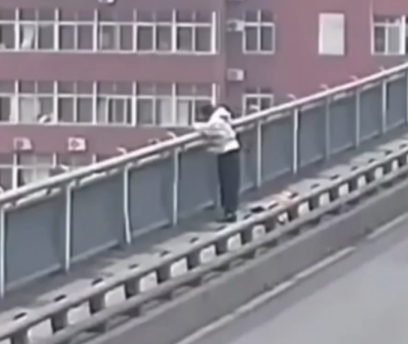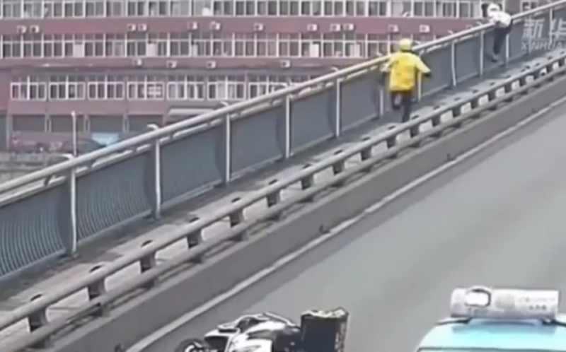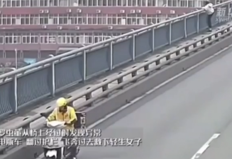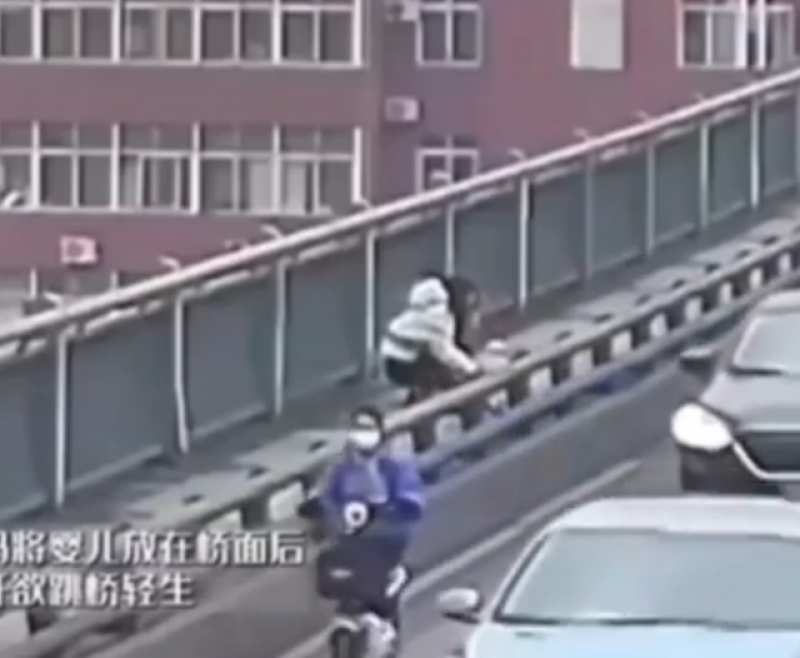 โดยเธอได้วางลูกของเธอไว้บนสะพาน ก่อนหันหลังและพยายามที่ขึ้นไปบนราวสะพาน เพื่อกะโดดลงสู่แม่น้ำ แต่โชคดีที่หลัวฉงต่ง พนักงงานขับรถส่งอาหาร วัย 20 ปี ขับรถจักรยานยนต์ผ่านมาพอดี และเห็นการกระทำของคุณแม่ยังสาวคนดังกล่าว