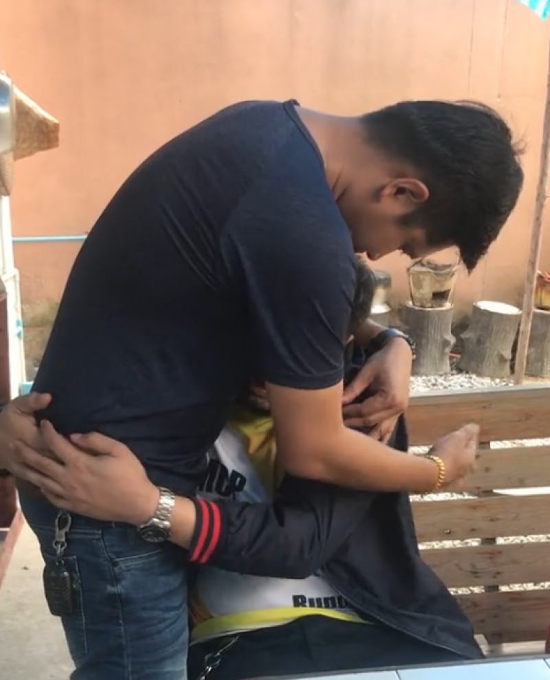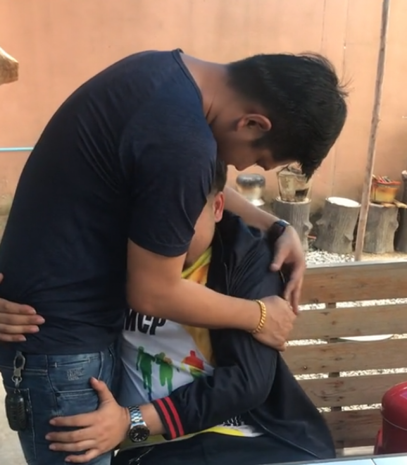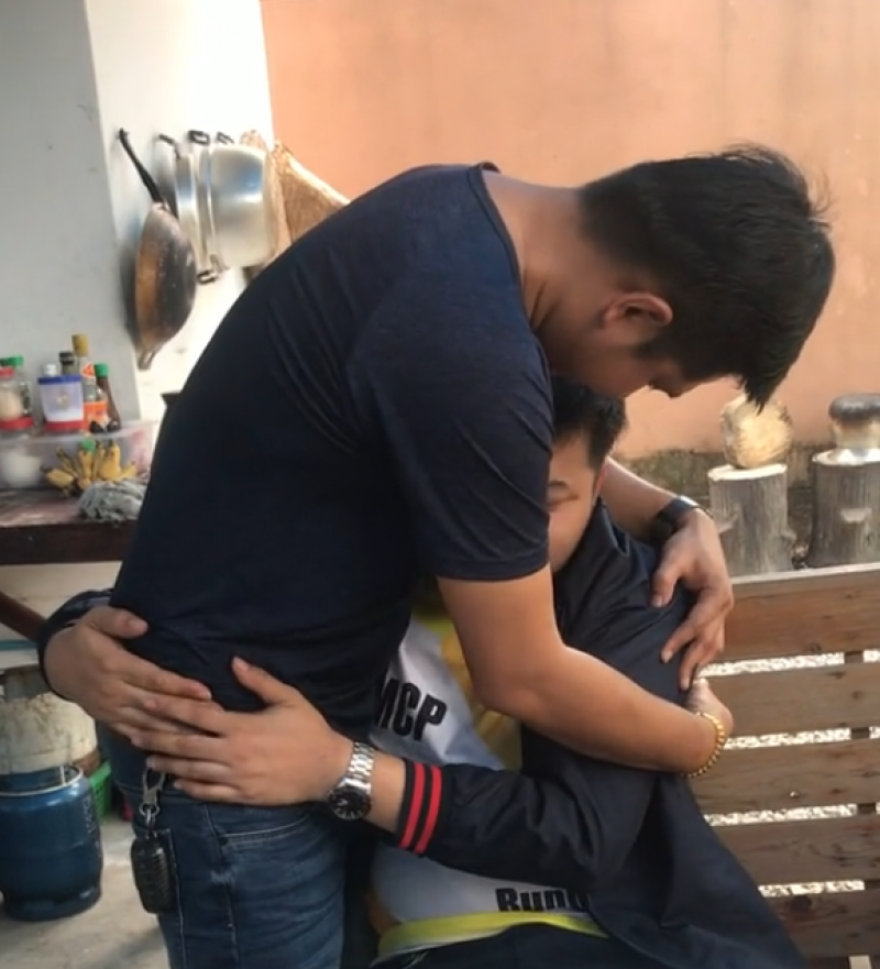 โดยคลิปดังกล่าวเผยให้เห็นชายคนหนึ่งกำลังร่ำไห้ และเข้าไปกอดชายอีกคนหนึ่ง ท่ามกลางคำพูดให้กำลังใจจากชายคนดังกล่าว ซึ่งหลังจากที่คลิปได้เผยแพร่ออกไป ก็ได้มีชาวโซเชียลจำนวนมากเข้ามาดู จนมียอดรับชมสูงถึง 1.9 ล้านวิว