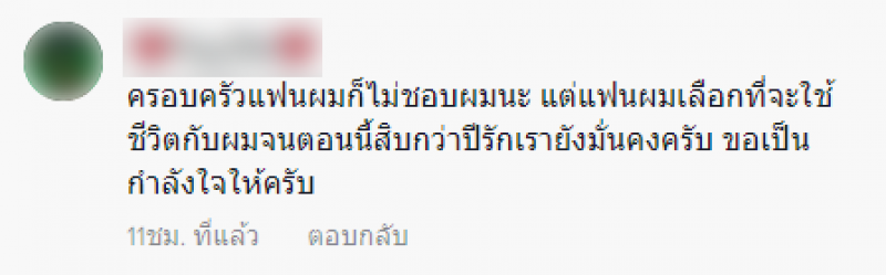 พร้อมทั้งยังเข้ามาแสดงความคิดเห็นต่าง ๆ เช่น ถ้าแฟนคุณเชื่อมั่นในตัวคุณเรื่องนี้จะไม่เป็นเเบบนี้ค่ะ เเม่เราก็ไม่ชอบสามีเรา 3-4 ปีที่เขาพิสูจน์ ทุกวันนี้เเม่รักสามีมากค่ะ ตอนนี้7ปีเเล้ว, ครอบครัวแฟนผมก็ไม่ชอบผมนะ แต่แฟนผมเลือกที่จะใช้เวลาร่วมกับผมจนตอนนี้สิบกว่าปีรักเรายังมั่นคงครับ ขอเป็นกำลังใจให้ครับ เป็นต้น