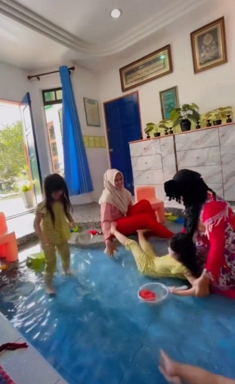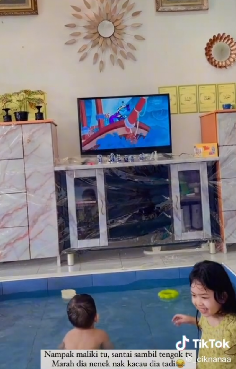 ผู้ใช้ tiktok ชื่อ @_ciknanaa จากรัฐสลังงอร์ มาเลเซีย ได้เผยภาพคุณย่าชาวมาเลย์สุดทุ่ม ยอมเปลี่ยนห้องนั่งเล่นให้เป็นสระว่ายน้ำในร่ม หวังให้หลาน ๆ เล่นได้อย่างเพลิดเพลิน แถมแวะชมทีวีได้อีกด้วย จากวิดีโอจะเห็นว่า บริเวณกลางห้องนั่งเล่นจะมีพื้นต่างระดับ เมื่อทำการยกสิ่งของต่าง ๆ ออกไปและเติมน้ำให้เต็ม เพียงเท่านี้ก็กลายเป็นสระว่ายน้ำในร่มพร้อมใช้งานแล้ว