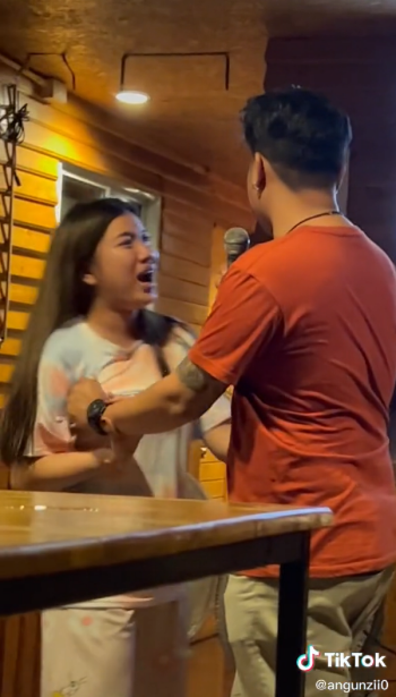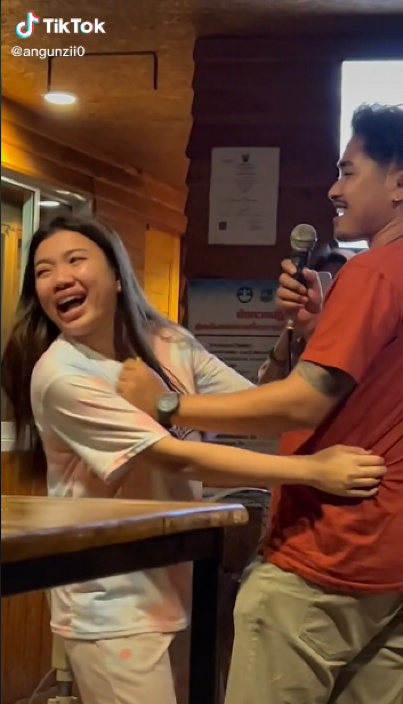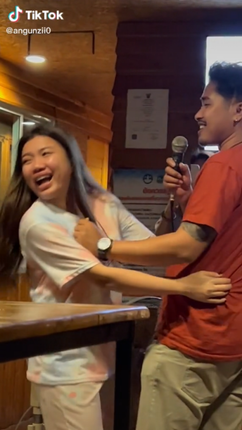 เรียกได้ว่าเป็นเรื่องราวที่ได้รับความสนใจ จากชาวโซเชียลเป็นจำนวนมาก หลังได้มีสาวรายหนึ่งได้โพสต์เรื่องราวลงใน tiktok ชื่อ angunzii0 ว่าตนนั้นถูกแฟนบอก "เลิก" ขณะไปล่องแพ ที่จังหวัดกาญจนบุรี ซึ่งเธอก็ได้กอดแฟนไว้แน่น แต่เธอก็ถูกแฟนของเธอ ผลักตลอดเวลา