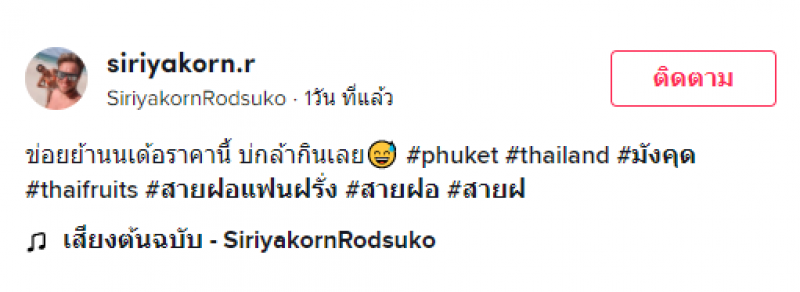 กลายเป็นคลิปที่ถูกพูดถึงอย่างมากในโลกออนไลน์ หลังจากที่มีผู้ใช้ TikTok ชื่อ siriyakorn.r ได้ทำการโพสต์คลิปหลังจากที่ไปตลาด และอยากทานมังคุด พร้อมกับระบุข้อความว่า ข่อยย่านเด้อราคานี้ บ่กล้ากินเลย #phuket #thailand #มังคุด #thaifruits