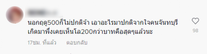 นึกว่าติดเล่น ๆ จึงถามแม่ค้าก็บอกว่าราคานี้จริง ๆ สุดท้ายก็เลือกที่จะซื้อไม่ลง แล้วตอนเย็นกลับมาใหม่ปรากฎแม่ค้าลดราคาลงเหลือ 400 บาท จึงงงว่า สรุปต้นทุนเท่าไหร่กันแน่ หลังจากนั้นก็ได้มีชาวโซเชียลจำนวนมากเข้ามาคอมเมนต์ถึงเรื่องดังกล่าว ซึ่งส่วนมากมองว่าแพงเกินจริง