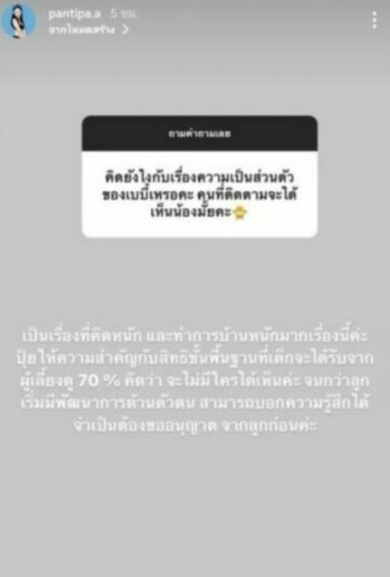 จึงคิดว่าจะไม่มีใครได้เห็น จนกว่าลูกจะเริ่มมีพัฒนาการด้านตัวตน และสามารถบอกความรู้สึกได้ ท่ามกลางโซเชียลเข้ามาแสดงความคิดเห็นจำนวนมาก