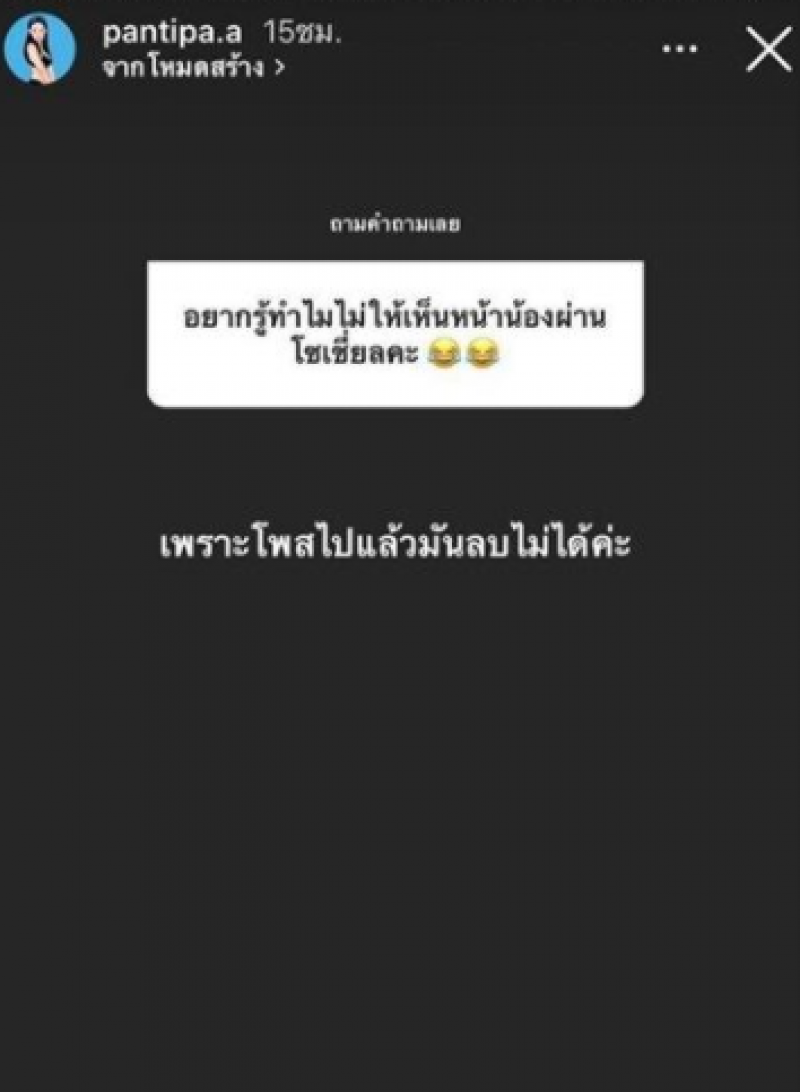 ล่าสุด เมื่อวันที่ 20 ก.พ.65 ที่ผ่านมา ปุ้มปุ้ย เปิดโอกาสให้บรรดาแฟนคลับถามคำถามผ่านไอจีสตอรี่ โดยมีแฟนคลับรายหนึ่งเข้ามาถามคำถามว่า อยากรู้ทำไมไม่ให้เห็นหน้าน้องผ่านโซเชียล ด้าน ปุ้มปุ้ย ตอบว่า เพราะโพสต์ไปแล้วมันลบไม่ได้ค่ะ