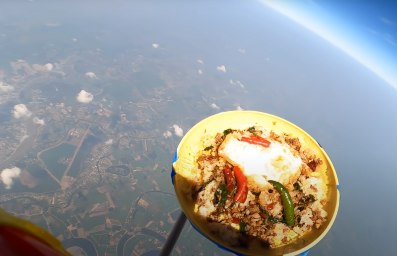 จากกิจกรรมที่ สำนักงานพัฒนาเทคโนโลยีอวกาศและภูมิสารสนเทศ หรือ GISTDA ในฐานะผู้ให้คำปรึกษา Youtuber และทีมงานรายการ Retired working for you ได้ร่วมกันทดลองส่ง ผัดกะเพรา ขึ้นไปบนชั้นบรรยากาศ