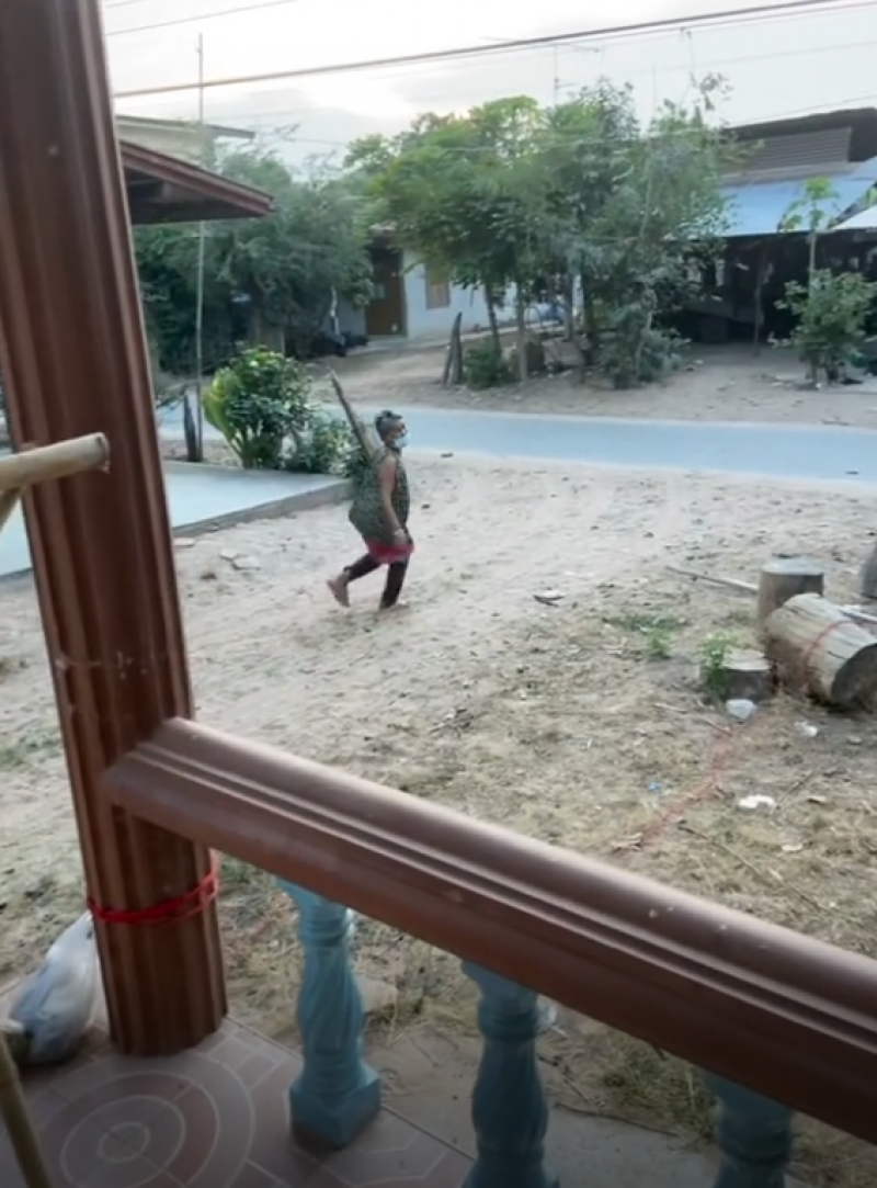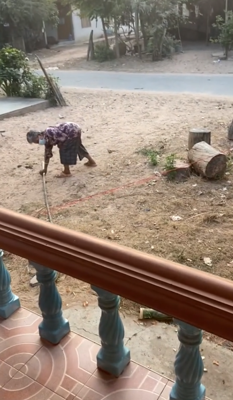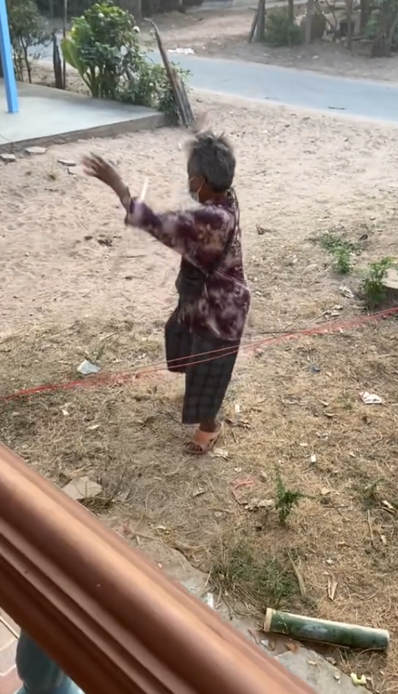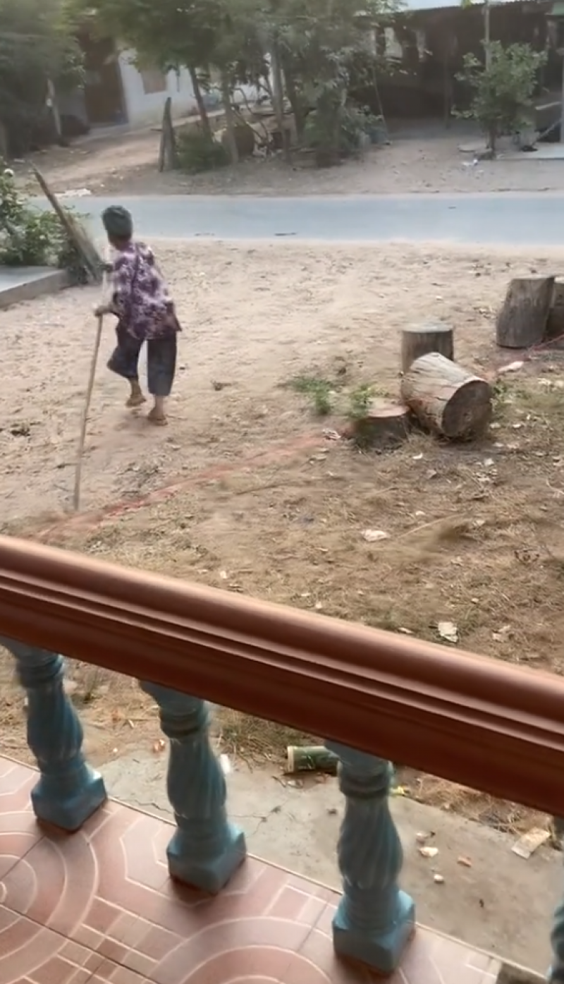 โดยภายในคลิปจะเห็นคุณยายถืออาหารมาวางไว้ พาเจอของคลิปออกมารับอาหาร คุณถึงกับรีบวิ่งหนีทันที พอวันต่อมาคราวนี้คุณยายเตรียมไม้มาด้วย แต่ถึงจะใช้ไม่อย่างไร พอหลานรับอาหาร คุณยายรีบปล่อยไว้ แล้วค่อยมาเก็บไม้ทีหลัง จากนั้นก็รับวิ่งอีกตามเคย สงสัยคุณยายน่าจะชอบออกกำลังกายแน่ ๆ