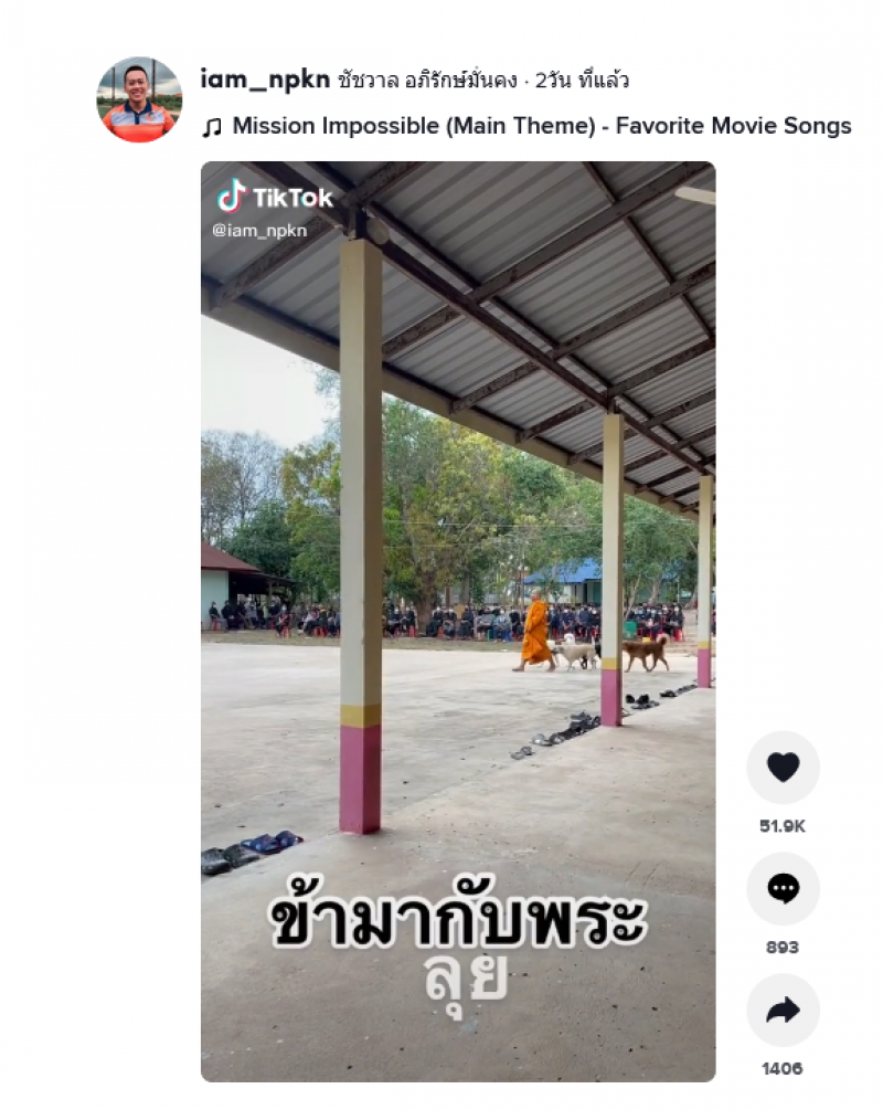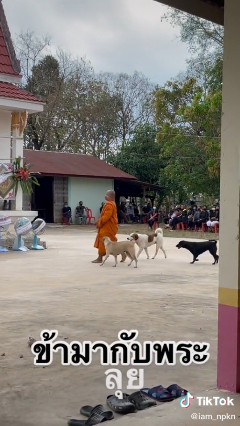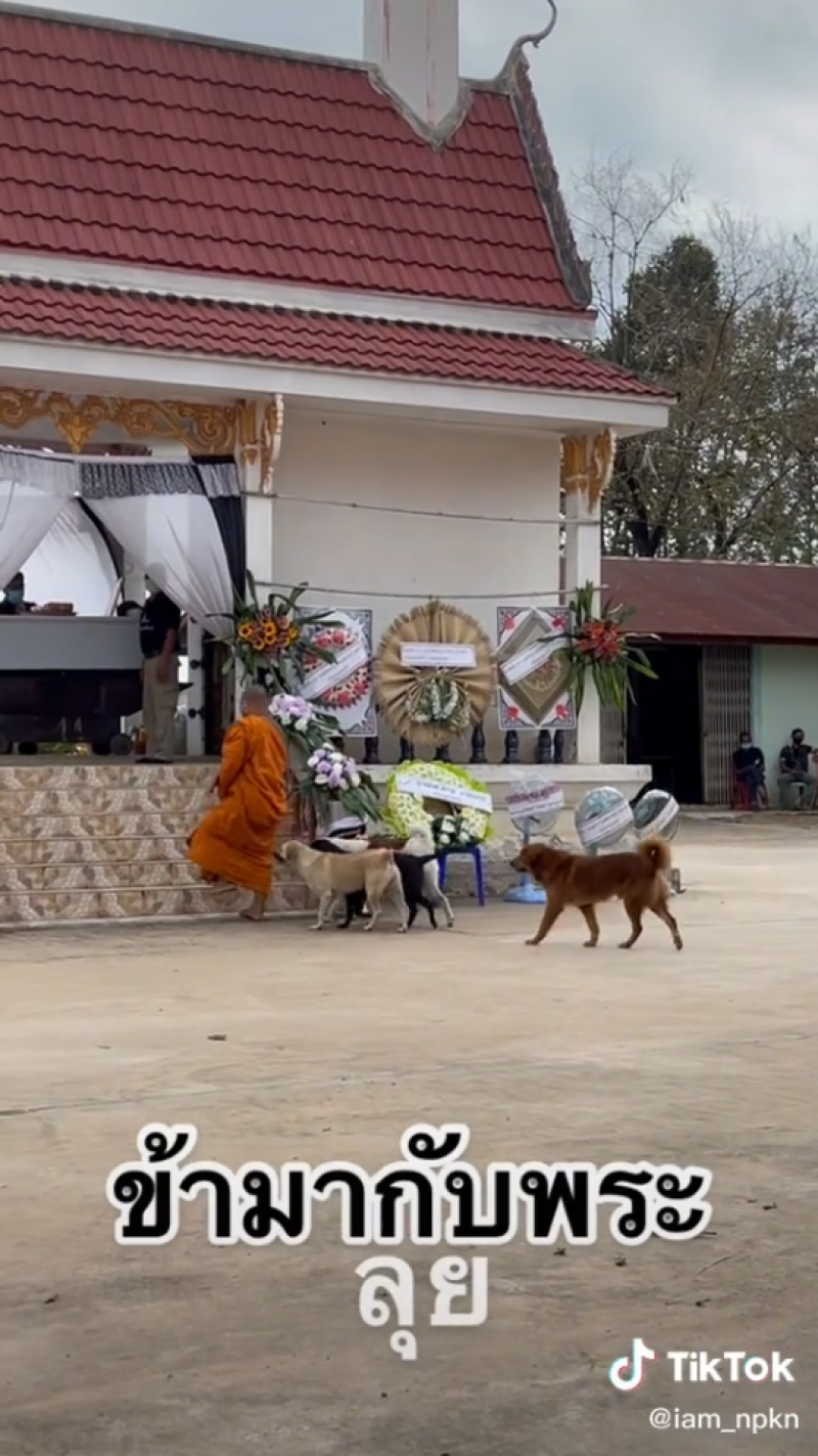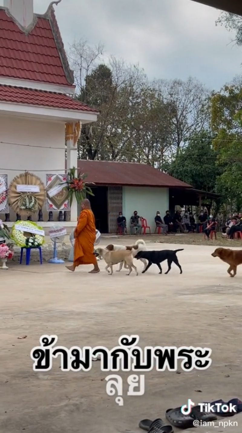 กลายเป็นอีกหนึ่งคลิปไวรัลในโลกออนไลน์ หลังจากที่ผู้ใช้ tiktok ชื่อ iam_npkn ได้เผยแพร่คลิปสุดน่ารักของแก๊งหมาวัดกลุ่มหนึ่ง ที่เดินตามหลวงพ่อขึ้นปฏิบัติกิจ โดยแก๊งเจ้าตูบเดินตามแบบประชิดตัวกันเลยทีเดียวคล้ายเป็นบอดี้การ์ดส่วนตัว ขนาดขึ้นไปเมรุ ทีมบอดี้การ์ดยังยกพวกขึ้นไปด้วย เรียกได้ว่าตามติดแบบสุดๆ