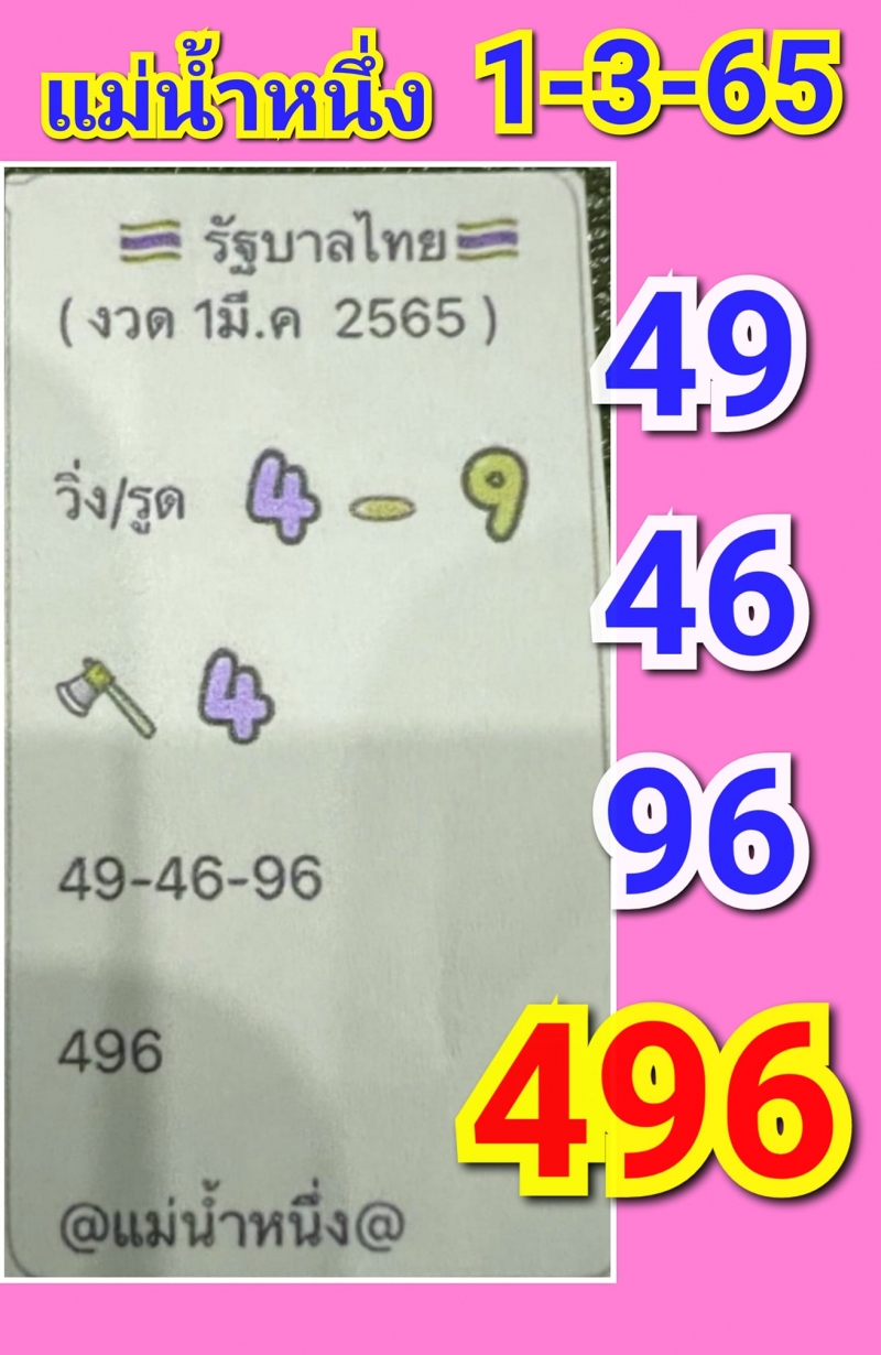 แต่ต้องบอกว่า แม่น้ำหนึ่งนั้น ไม่ได้เก็บเรื่องดังกล่าวมาคิดแต่อย่างใด เพราะยังคงเดินหน้าทำหน้าที่ เจ้าแม่แห่งศาสตร์ตัวเลขอยู่เหมือนเดิม ไม่ได้สนดราม่าอะไรทั้งนั้น เพราะล่าสุดเจ้าตัวออกมาเผยแนวทางเลขเด็ดงวดนี้ 1 มีนาคม 2565 และยังบอกอีกว่าใครอยากตามก็ตาม ใครไม่อยากตามแล้วก็ไม่เป็นไร โดยแนวทางเลขงวดนี้ แม่น้ำหนึ่ง เน้นเลขไปที่เลข 4 – 9 และมีแนวทางสองสามตัวตรง ดังนี้