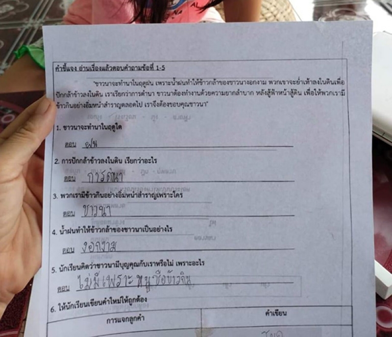 กลายเป็นอีกหนึ่งโพสต์ที่ชาวโซเชียลต่างก็เข้ามาแสดงความคิดเห็นและเผยแพร่ออกไปเป็นจำนวนมาก เมื่อได้มีผู้ใช้เฟซบุ๊กรายหนึ่ง เผยภาพการบ้านของเด็กน้อย ที่มีเรื่องราวเกี่ยวกับความยากลำบากในการทำงานของชาวนา เพื่อให้เรามีข้าวกินอยู่อย่างอิ่มหนำ เราจึงต้องขอบคุณชาวนา ซึ่งมีคำถามเกี่ยวกับชาวนาหลายข้อ โดยข้อสุดท้ายถามว่า "นักเรียนคิดว่าชาวนามีบุญคุณกับเราหรือไม่ เพราะอะไร"