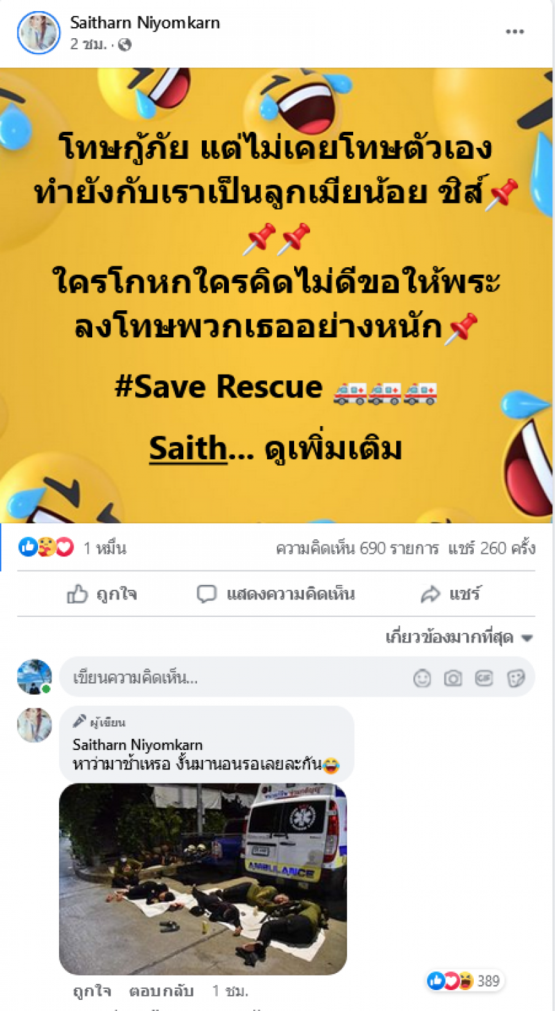 ล่าสุดต่าย สายธาร นิยมการณ์ หนึ่งในจิตอาสาของมูลนิธิร่วมกตัญญู ได้โพสต์ข้อความผ่านเฟซบุ๊ก Saitharn Niyomkarn ตอบกลับในมุมของคนทำงานกู้ภัย