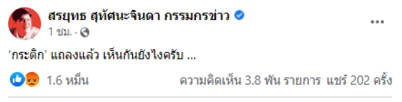ซึ่งหลังที่ กระติก ได้แถลงจบข่าวไปแล้วนั้น ได้มีเพื่อน ๆ คนในวงการบันเทิงหลายคน เข้ามาแสดงความคิดเห็นถึงการแถลงข่าวในครั้ง ไม่ว่าจะเป็นทางเฟซบุ๊ก เริ่มกันที่นักข่างชื่อดังอย่าง คุณสรยุทธ สุทัศนะจินดา ได้โพสต์ข้อความว่า กระติกแถลงข่าวแล้ว เห็นกันยังไบ้างครับ รวมไปถึงแอนนา ทีวีพูล ได้ทำการโพสต์ข้อความว่า ความจริงก็คือความจริงไม่มีใครชนะความจริงได้