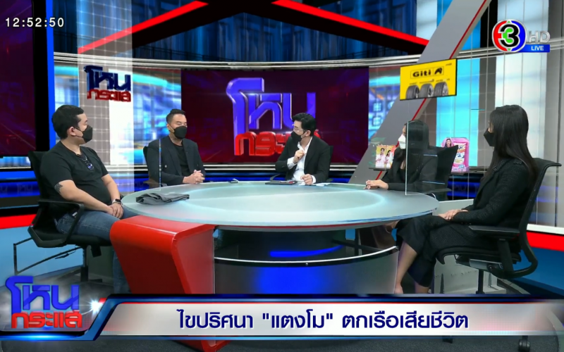ล่าสุด 4 ใน 5 คนที่อยู่ในเหตุการณ์บนเรือ ก็ได้มีการออกมาชี้แจงตอบคำถามอีกครั้ง ในรายการโหนกระแส ทางช่อง 3 ดำเนินรายการโดย หนุ่ม กรรชัย กำเนิดพลอย เพื่อคลายข้อสงสัยของสังคม กับสิ่งที่เกิดขึ้น ซึ่งขณะนี้มีการสอบถามแต่ละคน