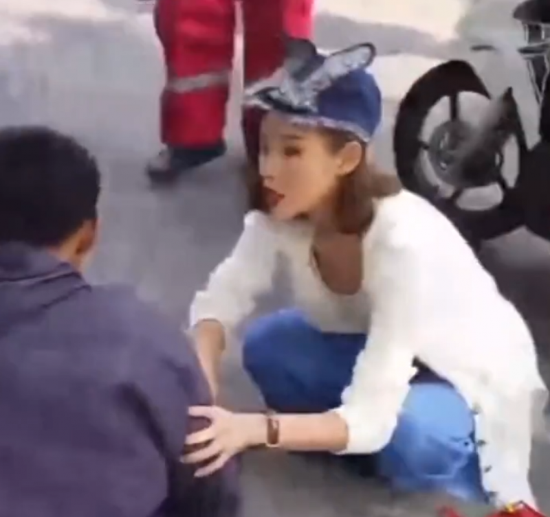 หลังจากนั้น นักแสดงสาวได้เดินเข้าช่วยชายคนดังกล่าว ถามว่าอาการเป็นอย่างไรบ้าง รวมไปถึงพยายามให้ความช่วย เท่าที่เธอจะสามารถทำได้ แม้เธอนั้นจะไม่รู้จักชายคนนี้ก็ตาม แต่เธอก็ไม่รีรอที่จะเข้าไปช่วย พยายามหาคนมาช่วยตลอด