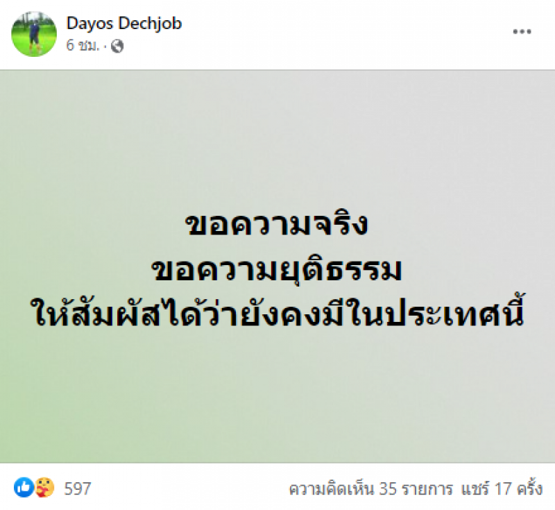 สำหรับ ความคืบหน้าล่าสุด วันที่ 3 มี.ค. 2565 นายดายศ เดชจบ พี่ชายแตงโม ได้ทำการโพสต์เฟซบุ๊ก แสดงความเห็นและพูดความรู้สึกในใจตอนนี้ ถึงเหตุการณ์ที่เกิดขึ้นกับน้องแตงโมว่า ขอความจริง ขอความยุติธรรม ให้สัมผัสได้ว่ายังคงมีในประเทศนี้