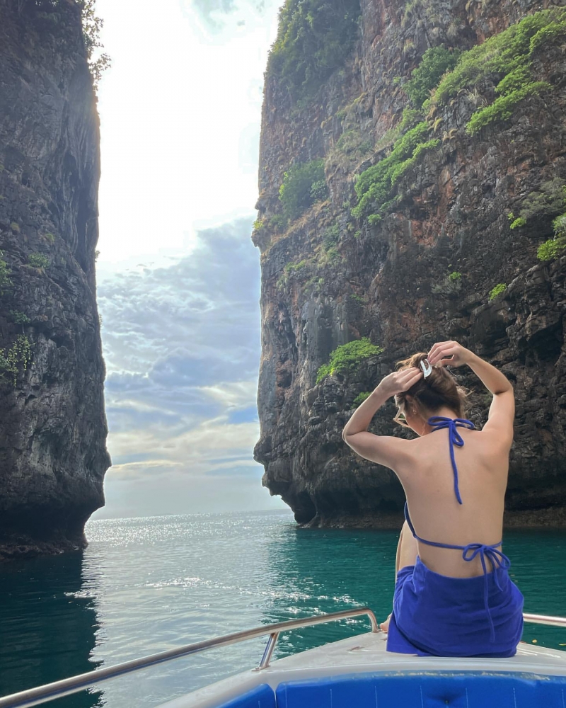 ล่าสุด สาวเก้า ได้เดินทางไปเที่ยวพักผ่อนที่ จ.กระบี่ คราวนี้จัดเต็มในชุดบิกินี่สีเหลืองอ่อน ๆ ทำให้ดูสวย แซ่บ ละมุนละไมไปหมด พร้อมด้วยแคปชั่นสไตล์คนสวยว่า หยุดยาวอะได้พัก แต่หยุดรักอะ ไม่ได้เลย บอกเลยว่าไม่ธรรมดาจริง ๆ สาวสวยคนนี้