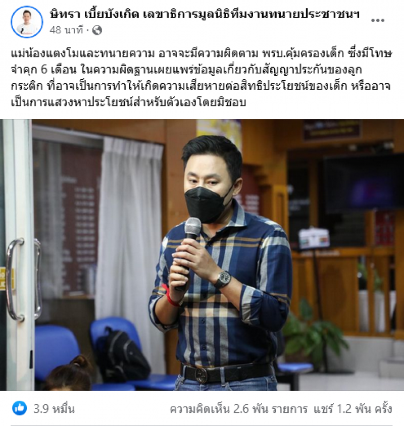 ล่าสุดทางด้าน ทนายตั้ม หรือทนาย ษิทรา เบี้ยบังเกิด เลขาธิการมูลนิธิทีมงานทนายประชาชนฯ ก็ได้มีการออกมาเคลื่อนไหวอีกครั้ง โดยได้มีการกล่าวถึงข้อกฎหมาย โดยระบุไว้ดังนี้