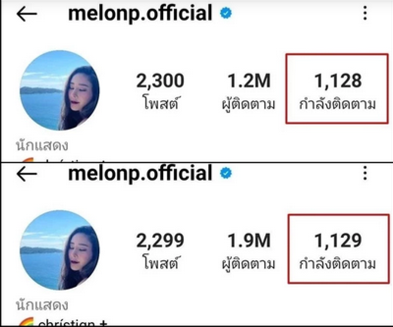 และความเคลื่อนไหวในอินสตาแกรมของแตงโม นิดา ล่าสุดนั้นอยู่ๆยอดคนที่แตงโมกำลังติดตาม มีจำนวนเพิ่มขึ้นมาอีก 1 คน โดยก่อนหน้านี้ไอจีของแตงโม มียอดที่กำลังติดตามอยู่ที่ 1,128 คน แต่ล่าสุดเพิ่มขึ้นมาเป็น 1,129 คน ทำให้ชาวเน็ตต่างสงสัยว่าการกดติดตาม เจ้าของไอจีจะต้องเป็นคนไปกดเอง แต่โทรศัพท์มือถือของเเตงโมอยู่ที่เจ้าหน้าที่ตำรวจส่งไปตรวจสอบแล้ว
