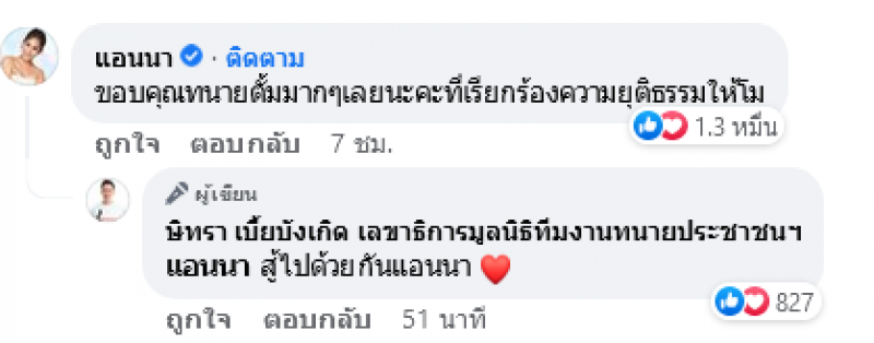 ตอนนี้ก็ให้อภัย ปอ ดนุภัทร เลิศทวีวิทย์ และ โรเบิร์ต ไพบูลย์ ตรีกาญจนานันท์ แบบ 100% และปอได้มาบอกว่าจะชดใช้ให้ ตามที่เรียกร้อง ซึ่งตนเรียกร้องไปเบื้องต้น 30 ล้านบาท จนกลายเป็นกระแสวิพากษ์วิจารณ์อย่างมากมายในโลกออนไลน์